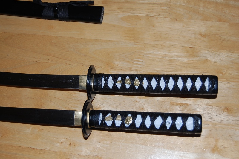 The blue Katana has now been sold, so I have made a matching pair of swords in black, the look much better than the first attempt. pictures to follow./..