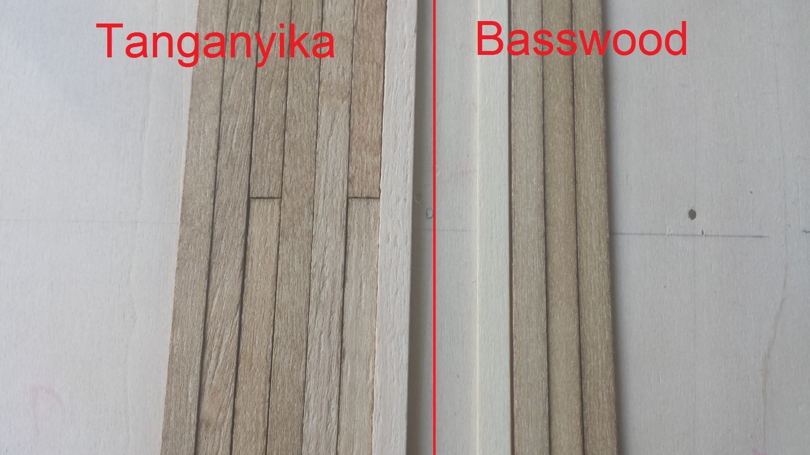 My personal view - is that there is no need to use Tanganyika for deck planking Box or maple are the most suitable. i am not a fan of staining and prefer the look of the natural wood (its a personal thing).