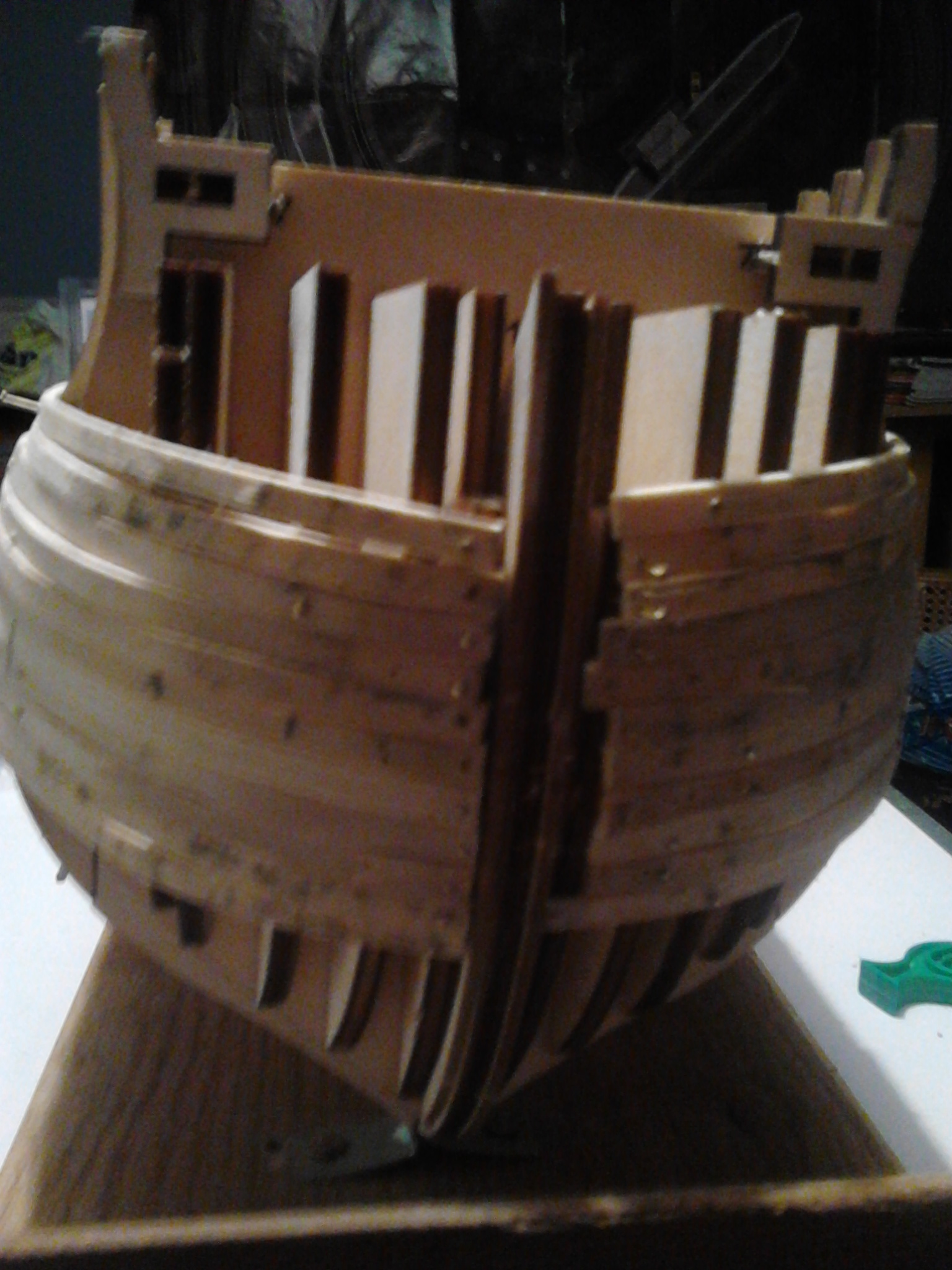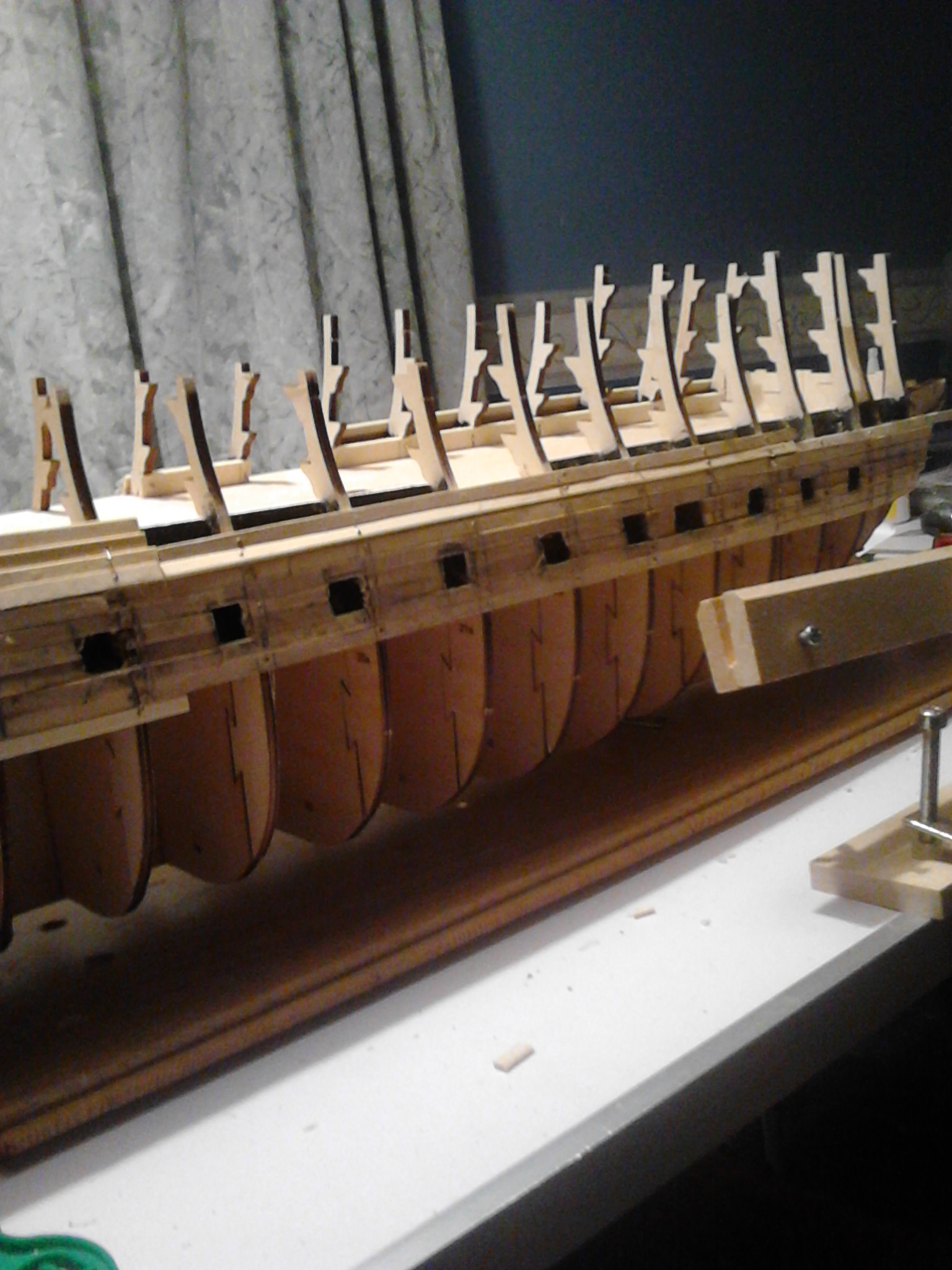 captain parrow nit here i have just noticed and it's back to the drawing board i have pinned planks yet not glued and should have as pins not to in wood ?? arrrrrrrrr it means all start on guns ports over weekend was i n vain thank god for extra wood o well one mistake . were's the rum more to come when caught up captain p !! File Attachment(s): captain parrow attached the following image(s):