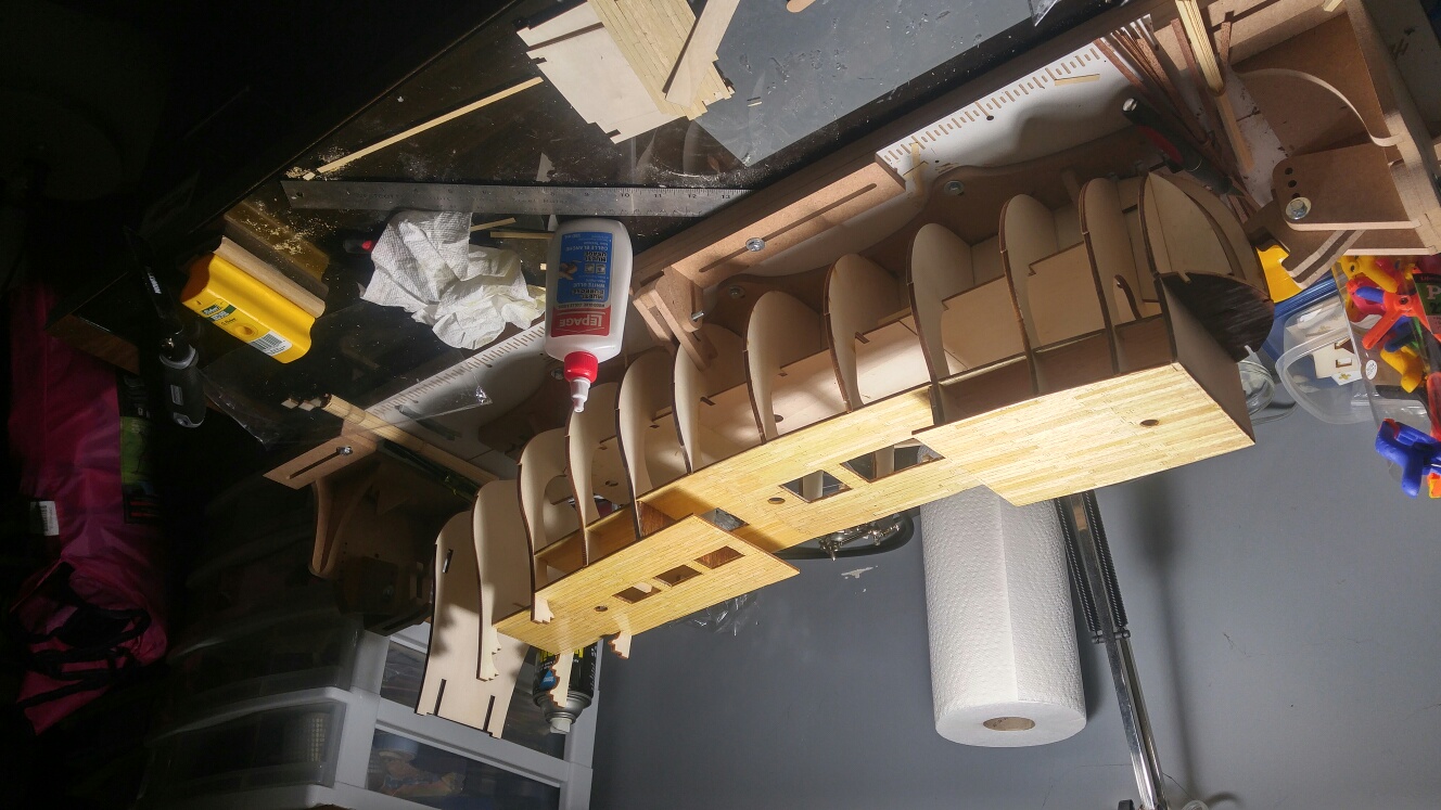 I did find a major error. When I installed frame 1 to the false keel I did not seat it to the bottom. Had to very gentle cut away the glue, clean it and reassemble it. There was a slight warp to it but was able to draw it into place. Glad I found it now and not later when build got along to do anything about it.