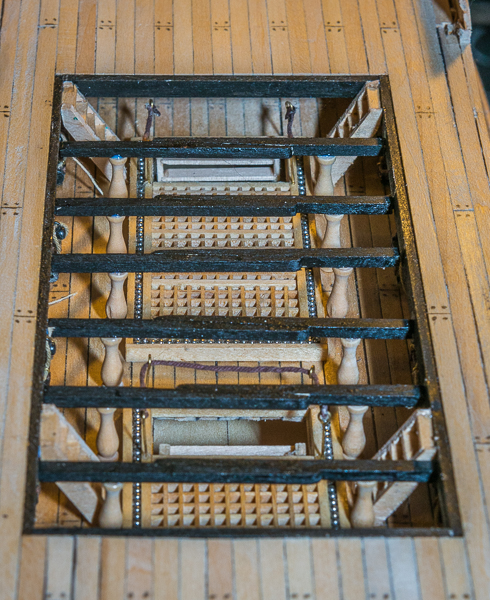 Stained and varnished the cabin partitions and after assembly, positioned them on the deck. Added the poop deck support beams and positioned the wheel. Planked the poop deck and sanded and fitted the edging strip. Marked the planking pattern on the deck. Built up the bulwarks and cut and sanded them to size. Made and fitted the timberheads and painted the bulwarks. Lined the quarterdeck opening and marked out and fitted the pillars. Added the skid beams and ladders before finishing off with the 3 side strips. I get so involved that I keep forgetting to stop and take photos but here we go anyway. Alan. File Attachment(s): NikonD60 attached the following image(s): Today is the tomorrow you wished for yesterday!