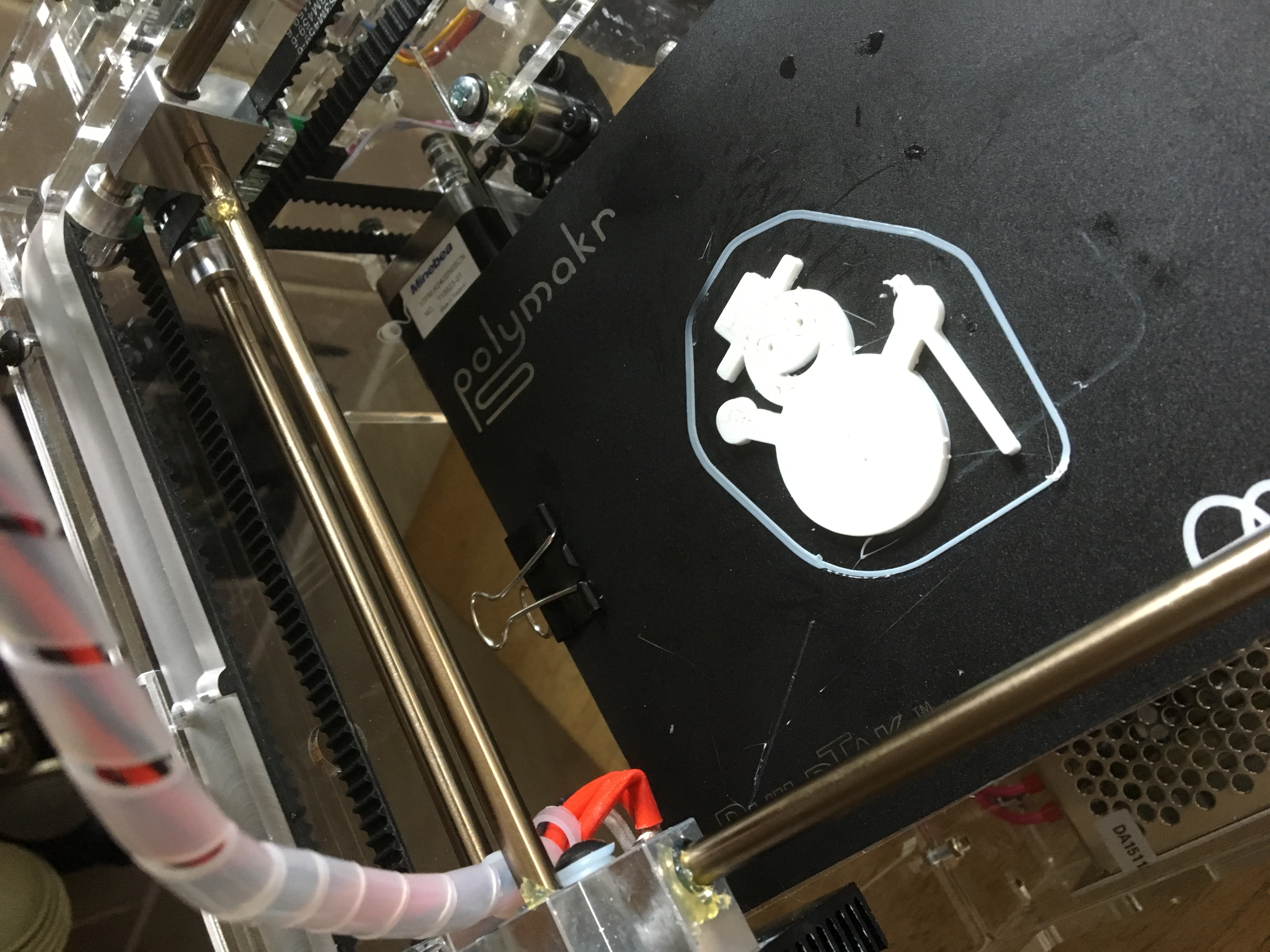 Rather fortunately I have used slic3r with my other printer so used that to try my first print. One of the secrets of good printing is getting the print bed in the right place The instructions talk about using a business card (somebody even mentioned a credit card) I use a piece of A4 paper. After initial setting up try a [print and it will be fairly obvious if adjustment is needed. It is worth spending some time on this.