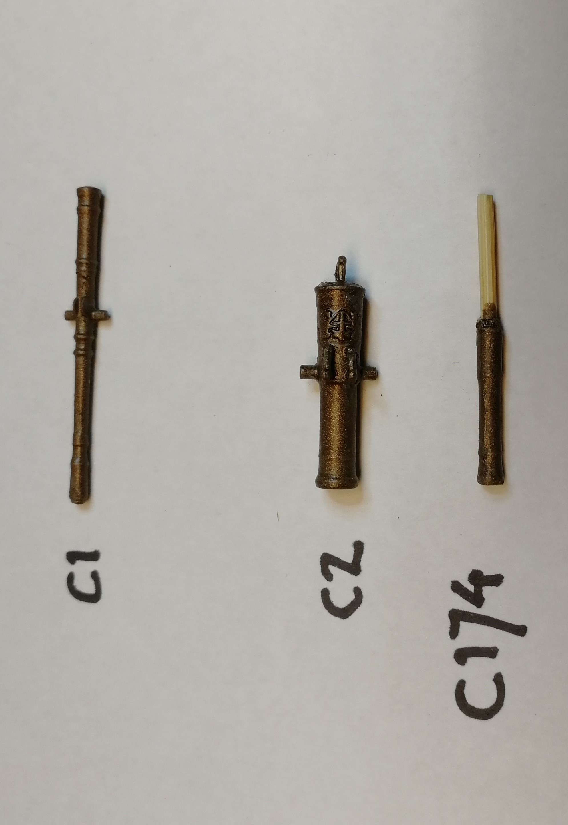 C2 and C174 are the 24-pounder cannons, so they should be similar in size. As you can see on my pictures the C2 cannon is too short and stubby and the C174 cannon is not much larger than the 3-pounder cannon C1. Actually the C2 cannons barely passes through the hull thickness when put in place (see pictures at stage 123).