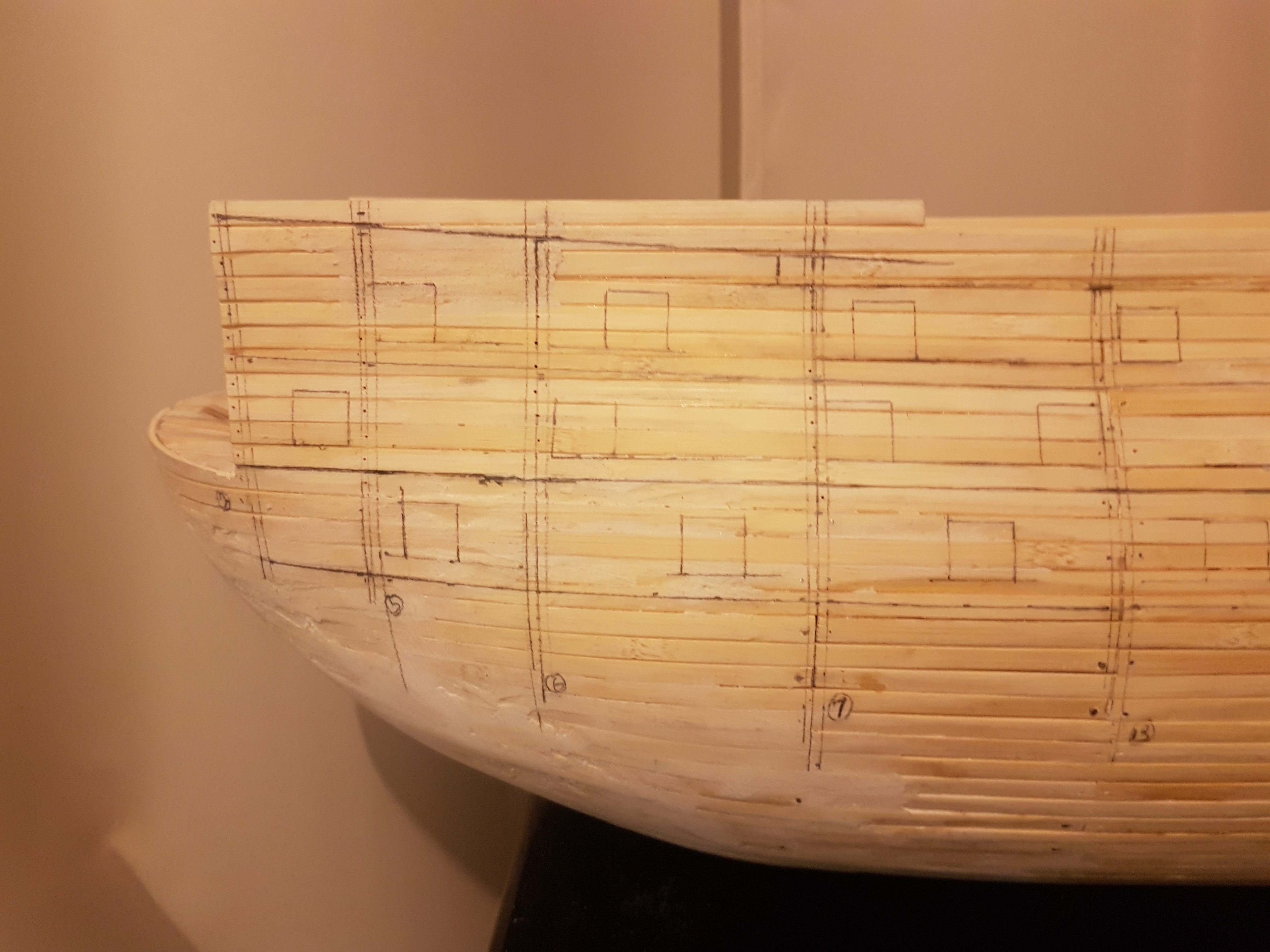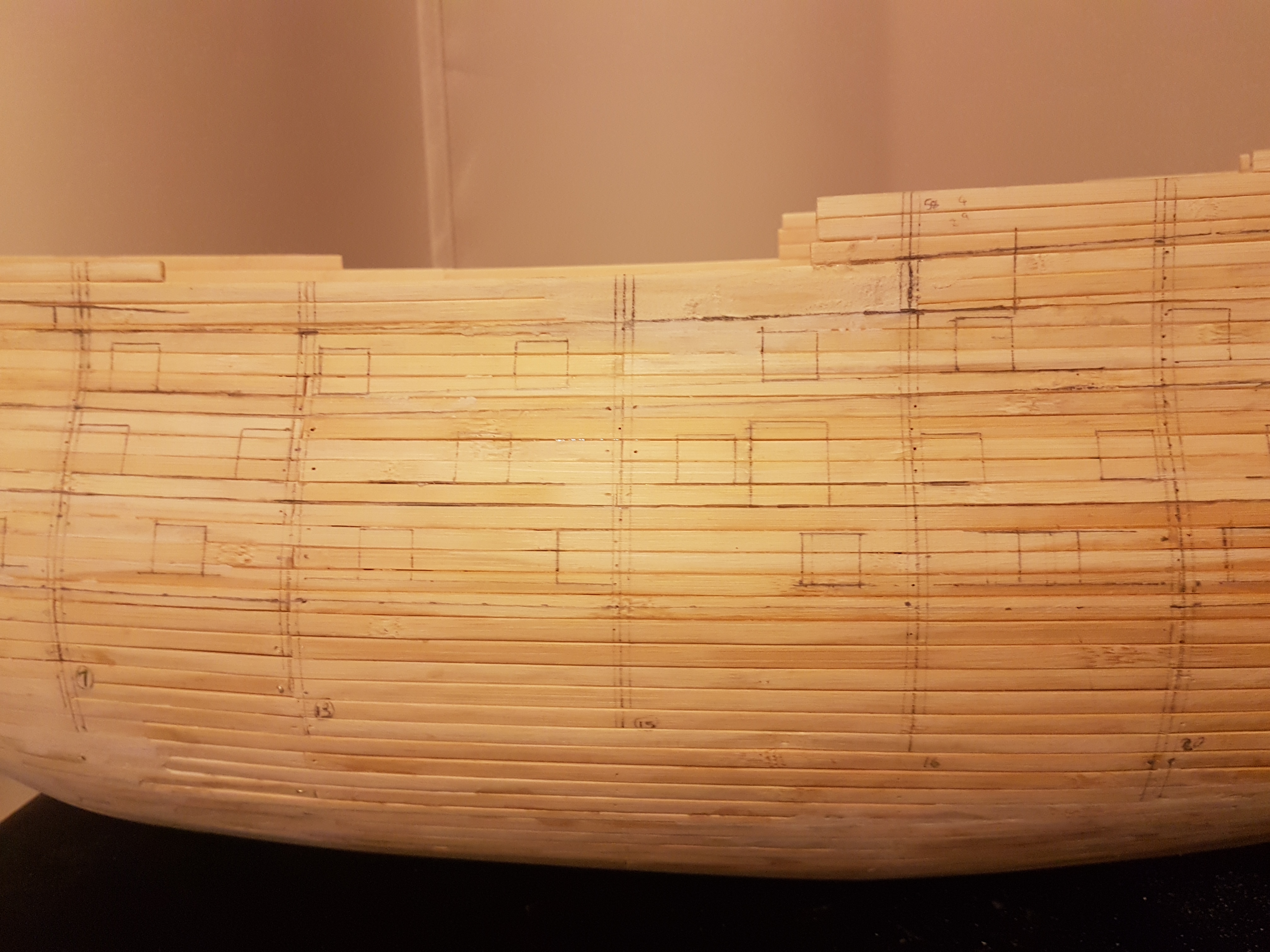 Quick update, both sides have been marked out and I have roughly removed all the gun ports from one side and in the process of filing them to the correct size (currently I have 10 complete)