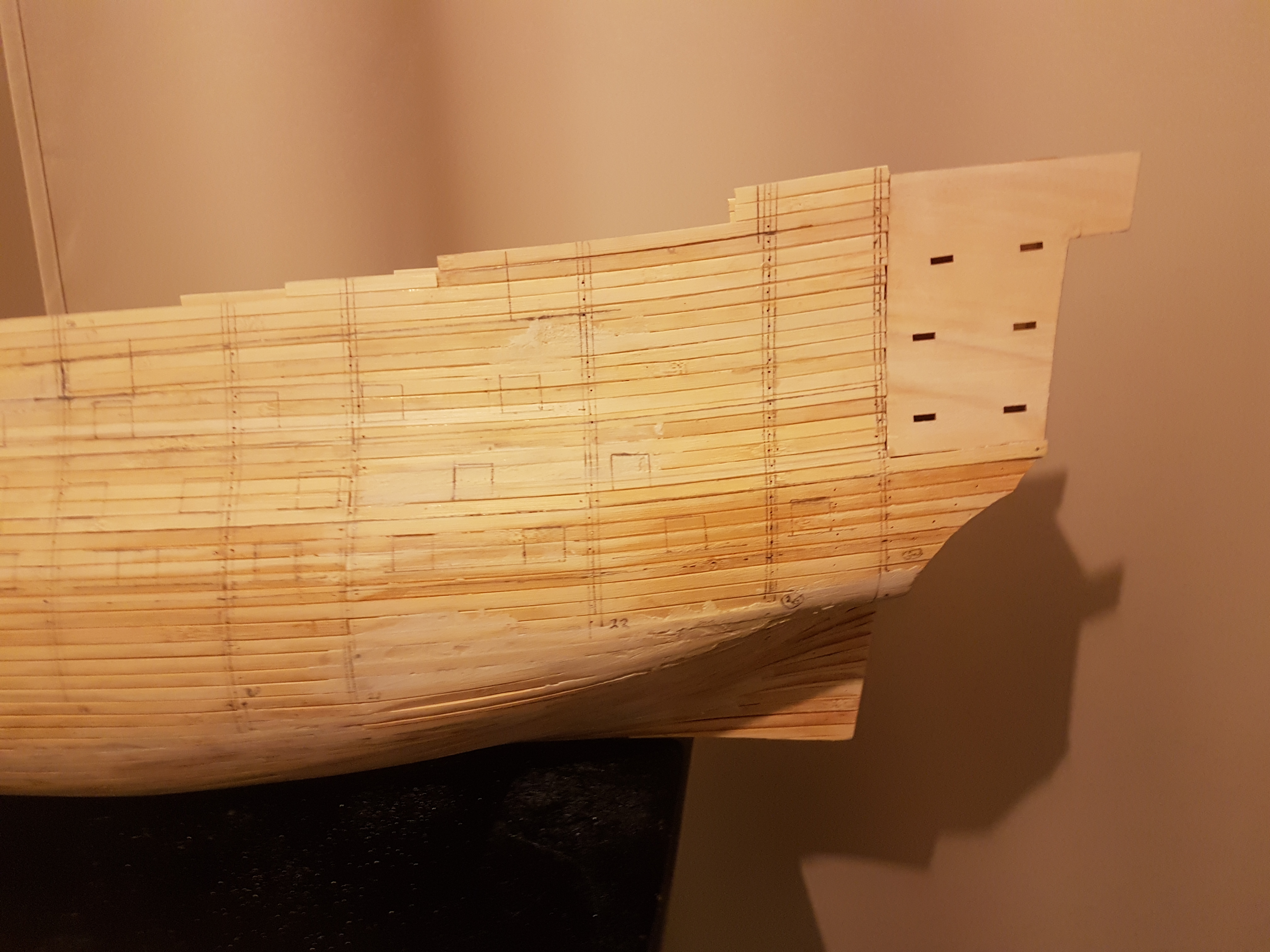 Its been a while since I've updated. The first layer of planks has been completed and mostly smoothed out. It will still need some more work once the gun ports have been cut out.