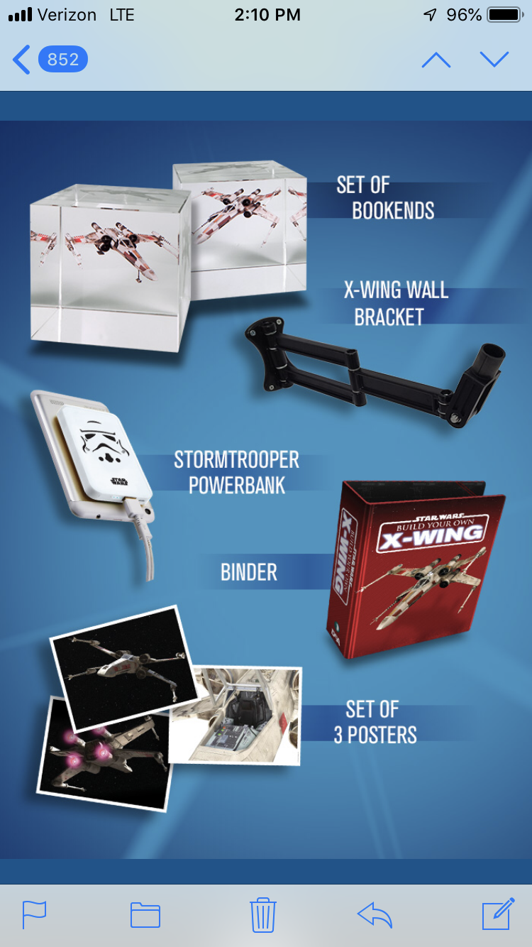 Checked with Model-Space the X-Wing wall bracket is on back order (I hope it’s not like my Millennium Falcon 12+ month mounting bracket wait last year).