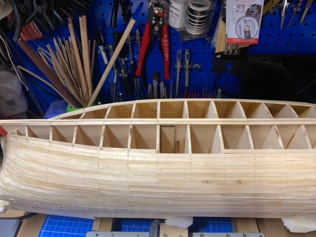 As I near the end of planking the hall, I’m realizing that I haven’t tapered the bow and stern planks enough. As such, I’m going to have a gap in the middle of the hall. Any suggestions?