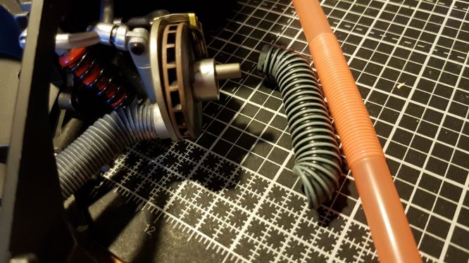 Less than Impressed by the kit's effort at re-creating these parts. Even if you get them to fit, the steering is then immovable because the parts are so rigid Oh!... and theres a bloody great seam down the middle. My solution... a large 'flexible' straw. It can be bent to shape and the straws I got were a perfect push-on fit. File Attachment(s): I3.jpg (323kb) downloaded 59 time(s). I1.jpg (356kb) downloaded 53 time(s).mr_frog attached the following image(s):
