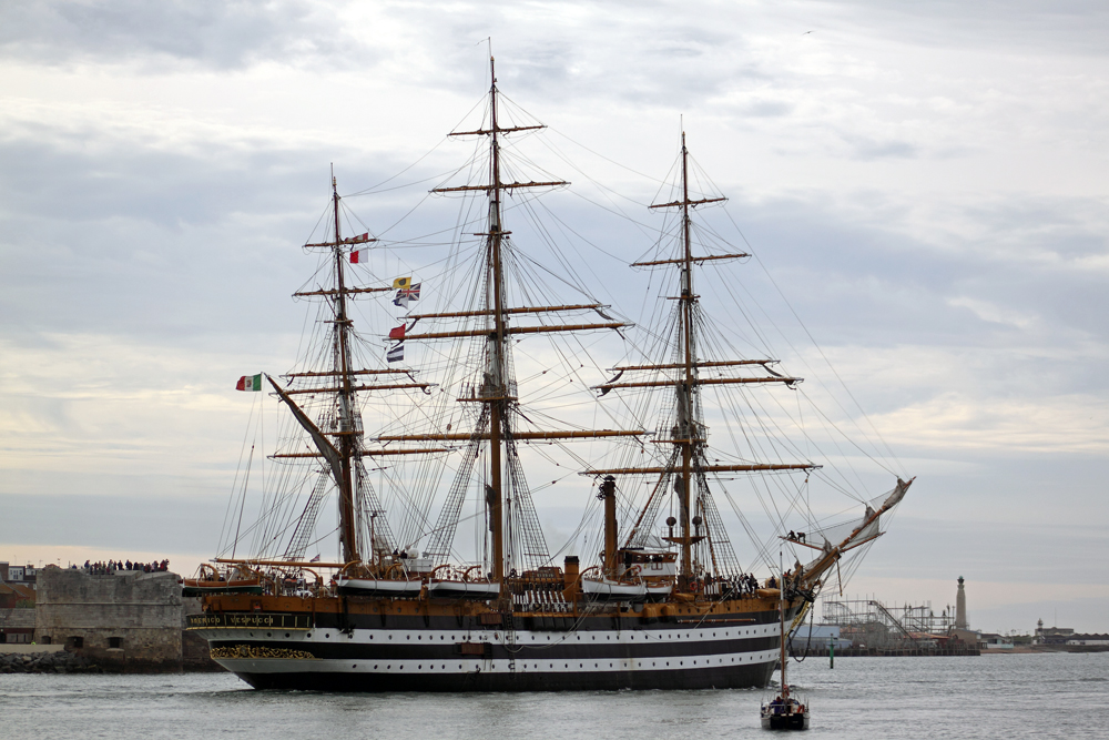 The Italian Naval Training Ship has a crew of 278, commanded by Captain Domenico La Faia, and has been in service with the Italian Navy since 1931. She has 24 sails, the tallest of her three steel masts is 177ft high and ship is 331ft long.