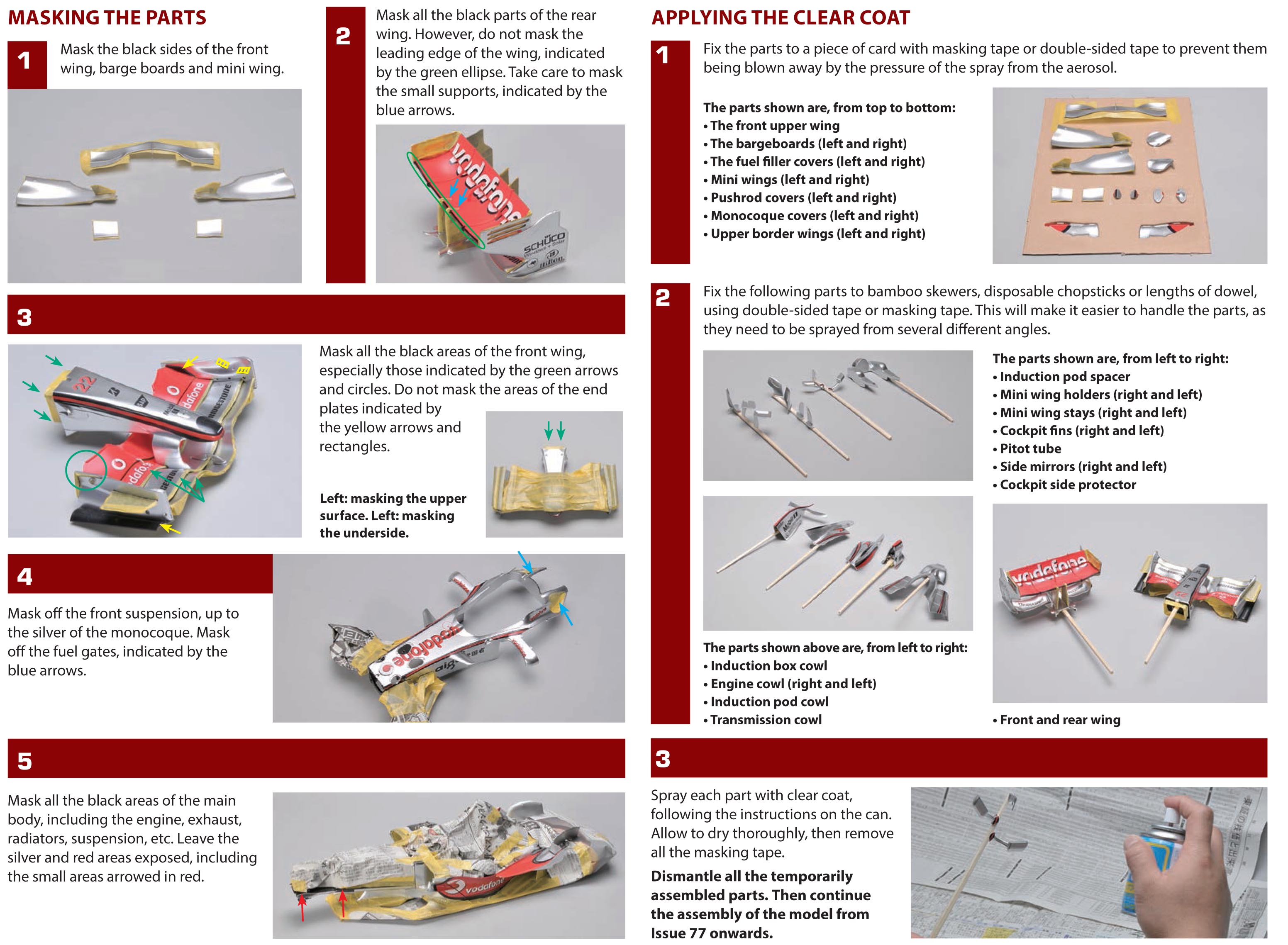 Hi all, The attached the instructions are for how to clear gloss your MP4-23, which is a process for the more advanced modeller. - If you gloss your model then please do not progress your build beyond issue 77, Step 5. You should not glue the monocoque in place which is described in step 6. Here is a link to the PDF. http://www.model-space.co.uk/media/281161/m_86_web_ag.pdfGood luck. Admin.