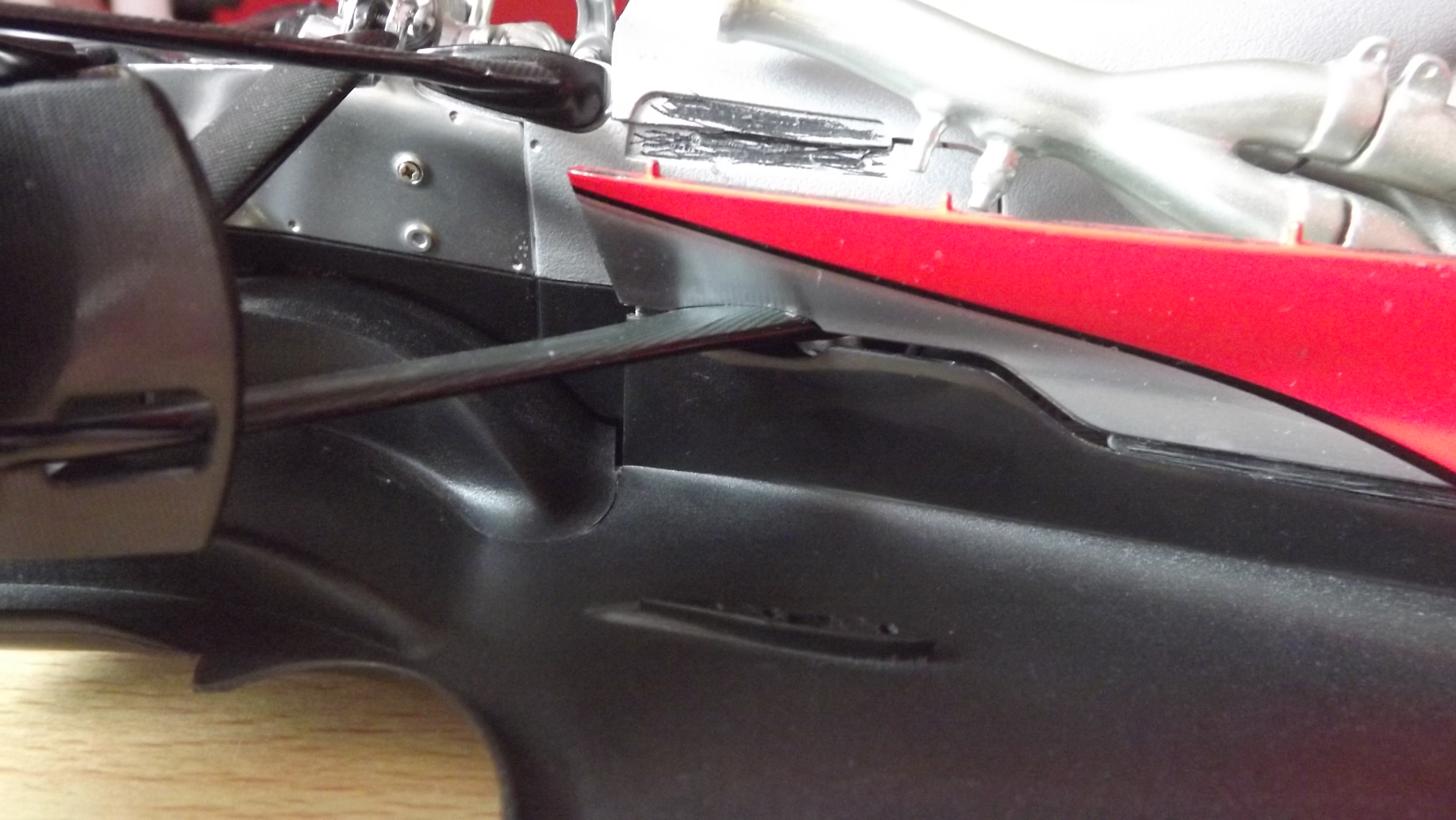Hi, thanks for getting in touch The part I'm stuck with is the side pod and the rear suspension as they are touching and shouldn't be. Heres a picture  Thanks!