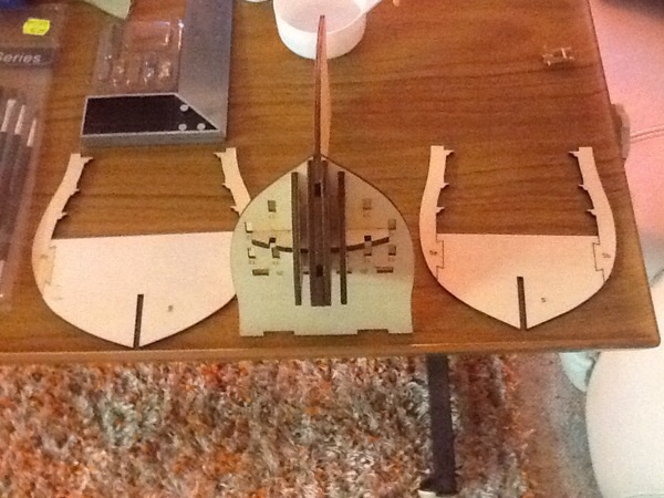 Re the rib frame gluing later I got that from Tommicks official build. It should make it easier to ensure first deck goes in ok as there is little room for error re the slots in the deck pieces. Just have to make sure when that time comes everything especially mast hole is exact in position. Still a few issues off yet.