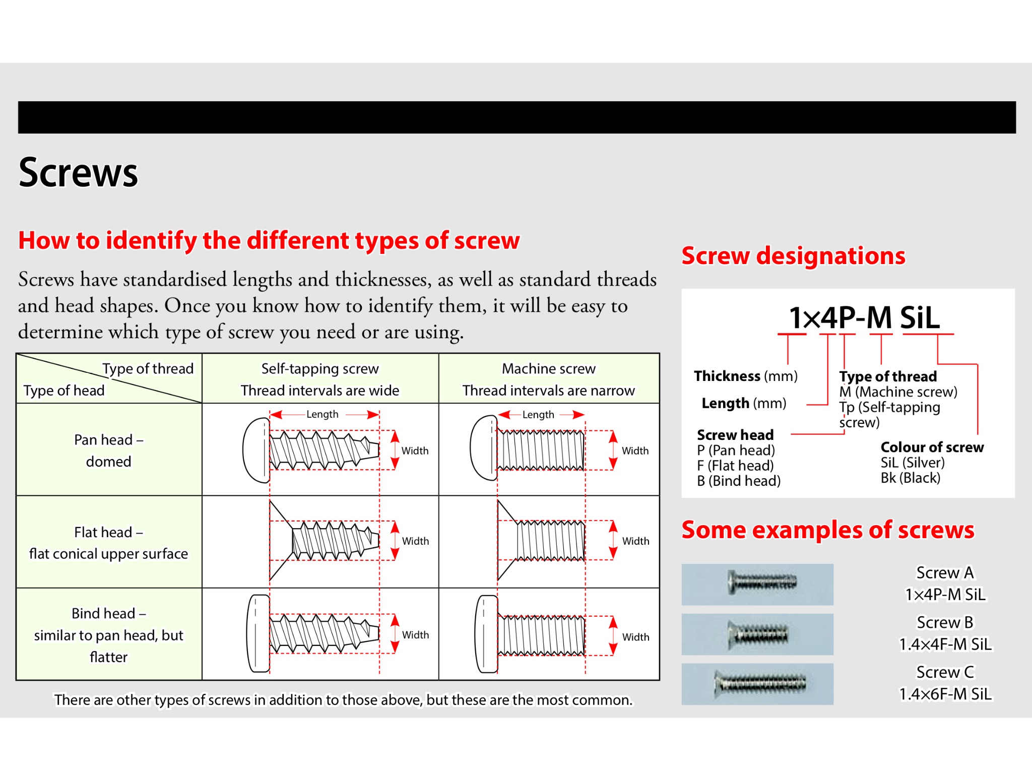 If you look closely at the official build for all stages it will tell you what screws to use for each relevant part of the build stage. Also pack 2 magazine came with a handy screw identification section but here it is again for those that may of missed it Wink