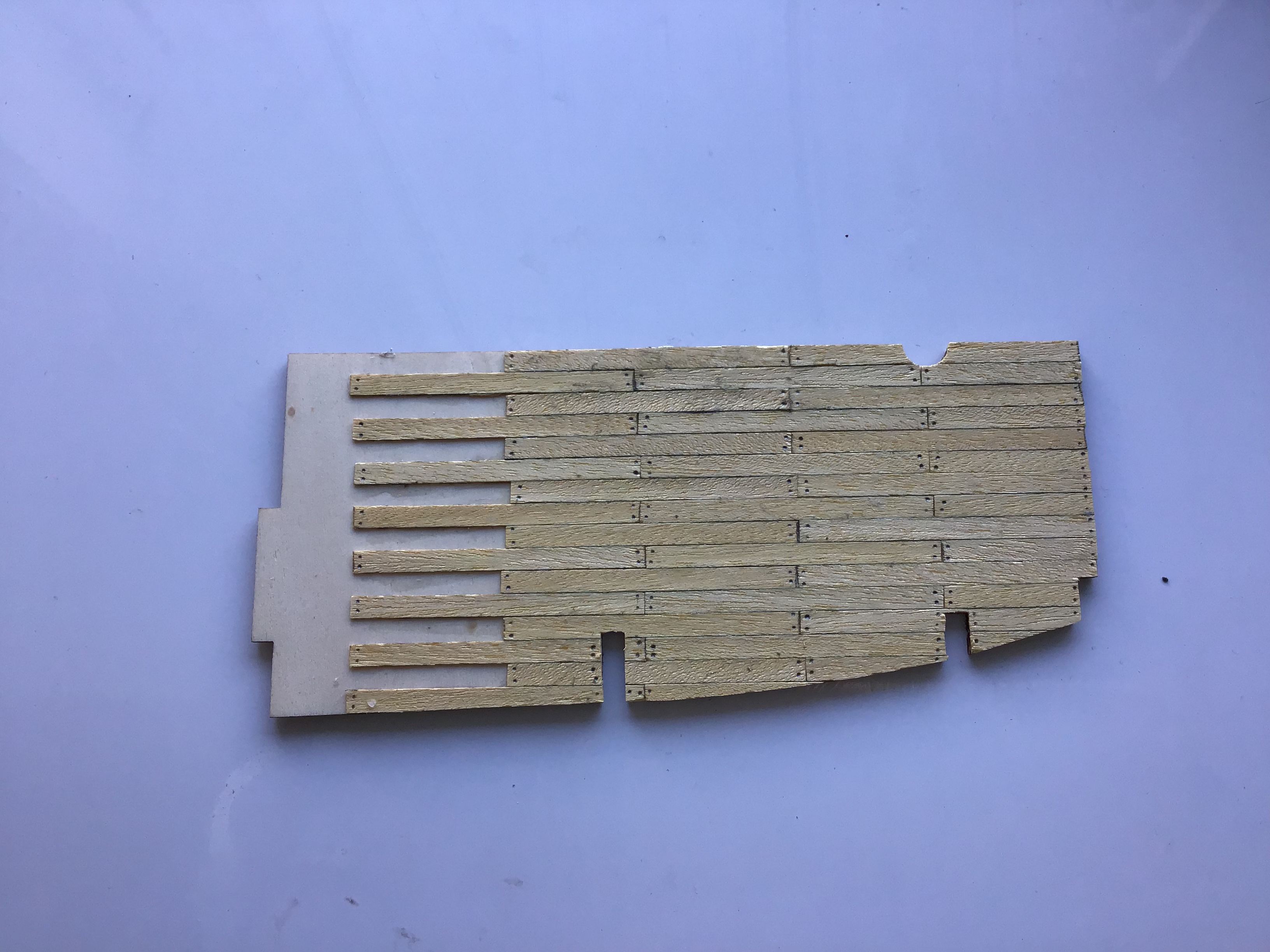 Before fitting the angle brackets check they are at a true 90 degree angle then screw them in position along one side making sure they are in a straight line and they do not go above the keel where the 1st false deck is to be fitted in place. You may need to shorten the upright arm to fit also do not fit them so they will fowl any frames when they are fitted to the false keel .