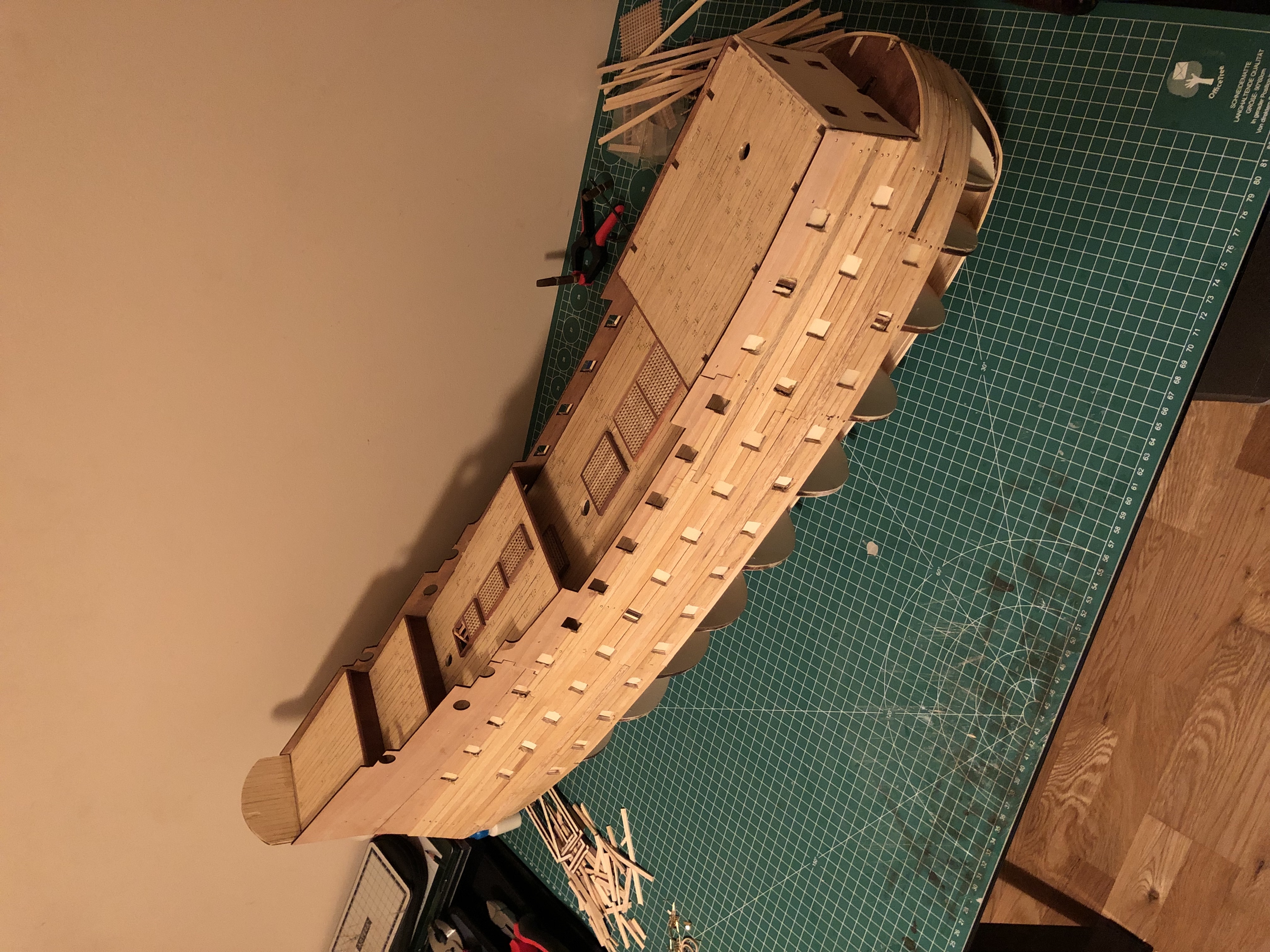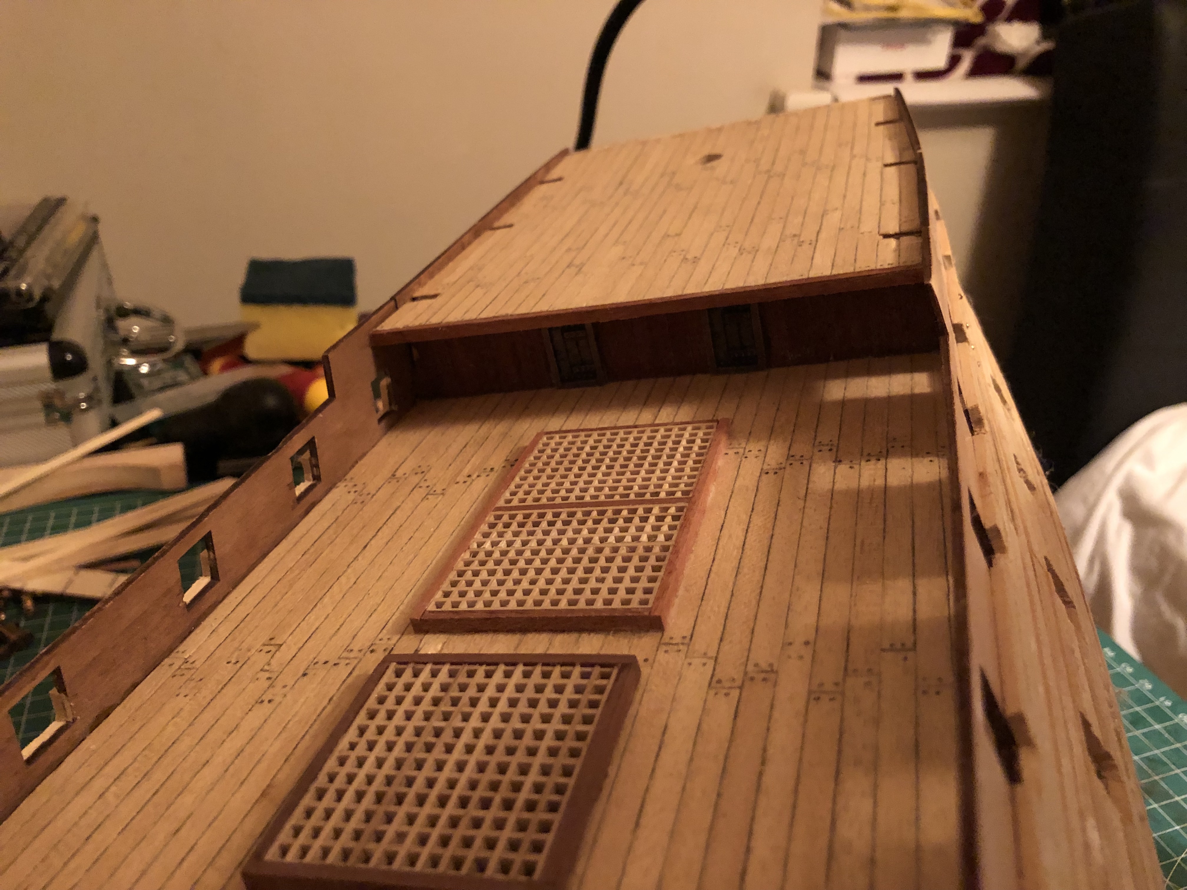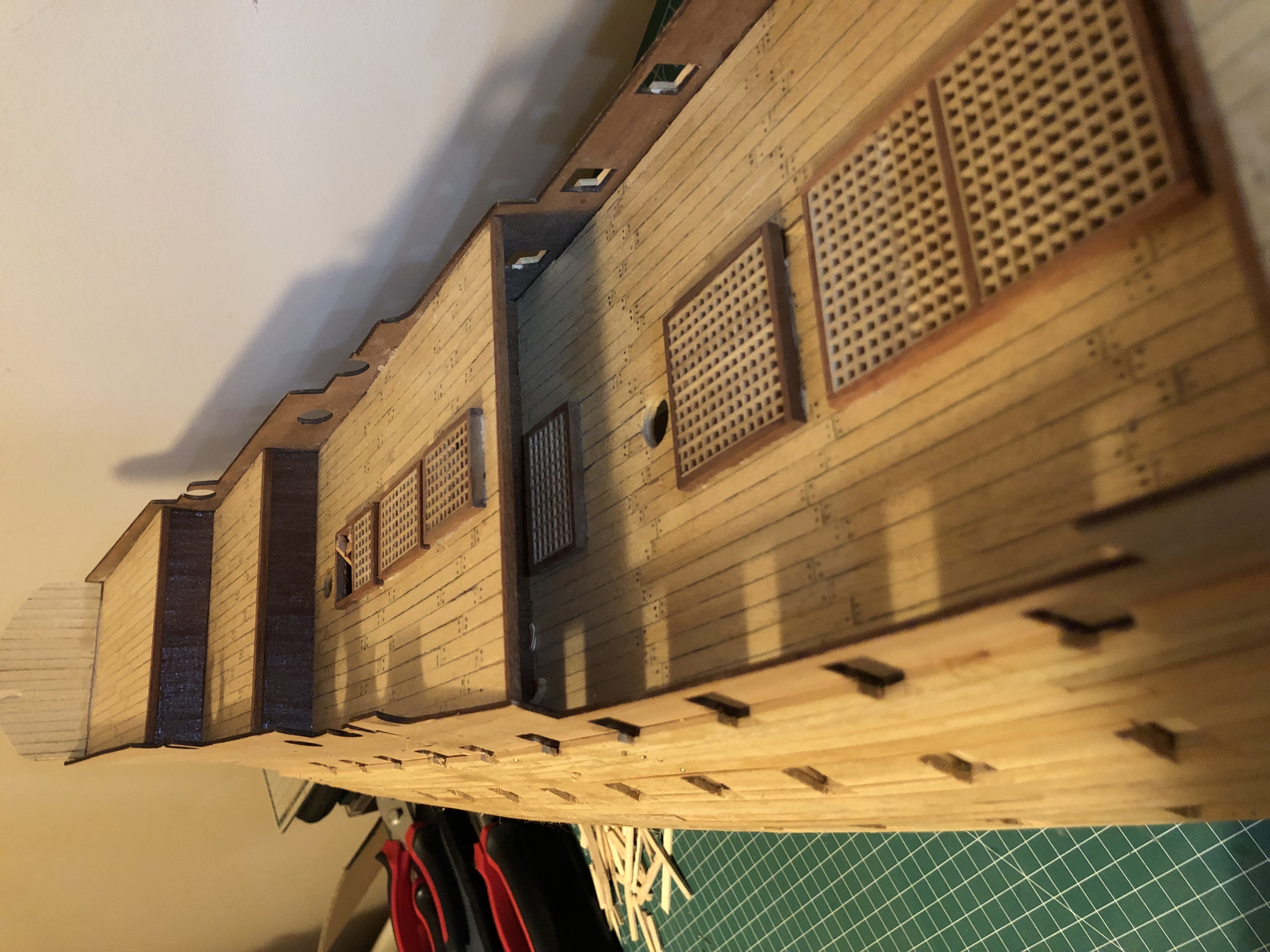 Another mistake I have made is on the bow's upper deck, where I have cut the deck where the hull joins the raw plank. I will try to think of a way to correct that, as It is a very important part of the ship which will be very visible even when finished.