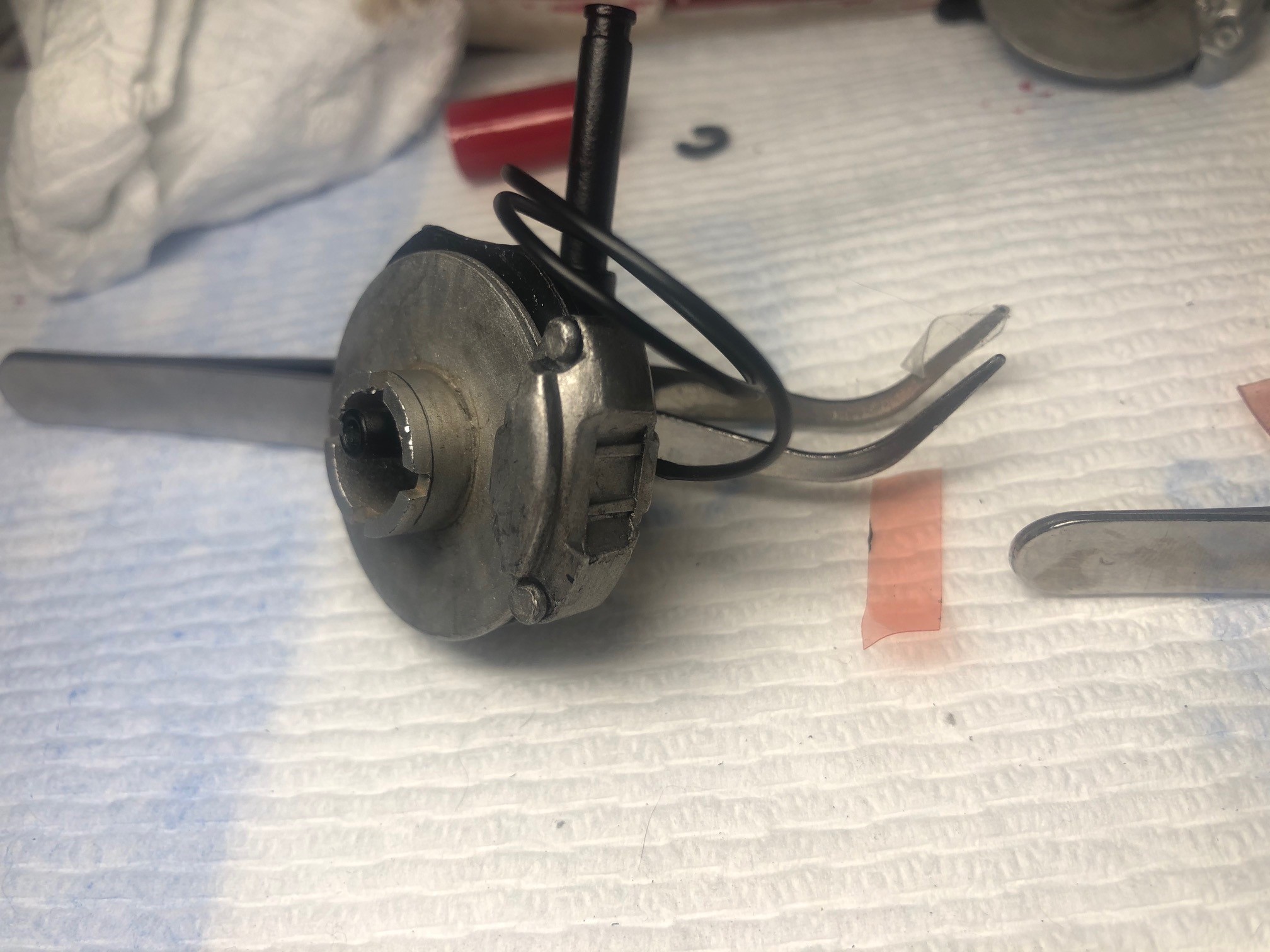 Not the final product, still playing around. New hose clamp from Model Motorcars on the left hose, modified with aluminum foil and .6mm hex screw