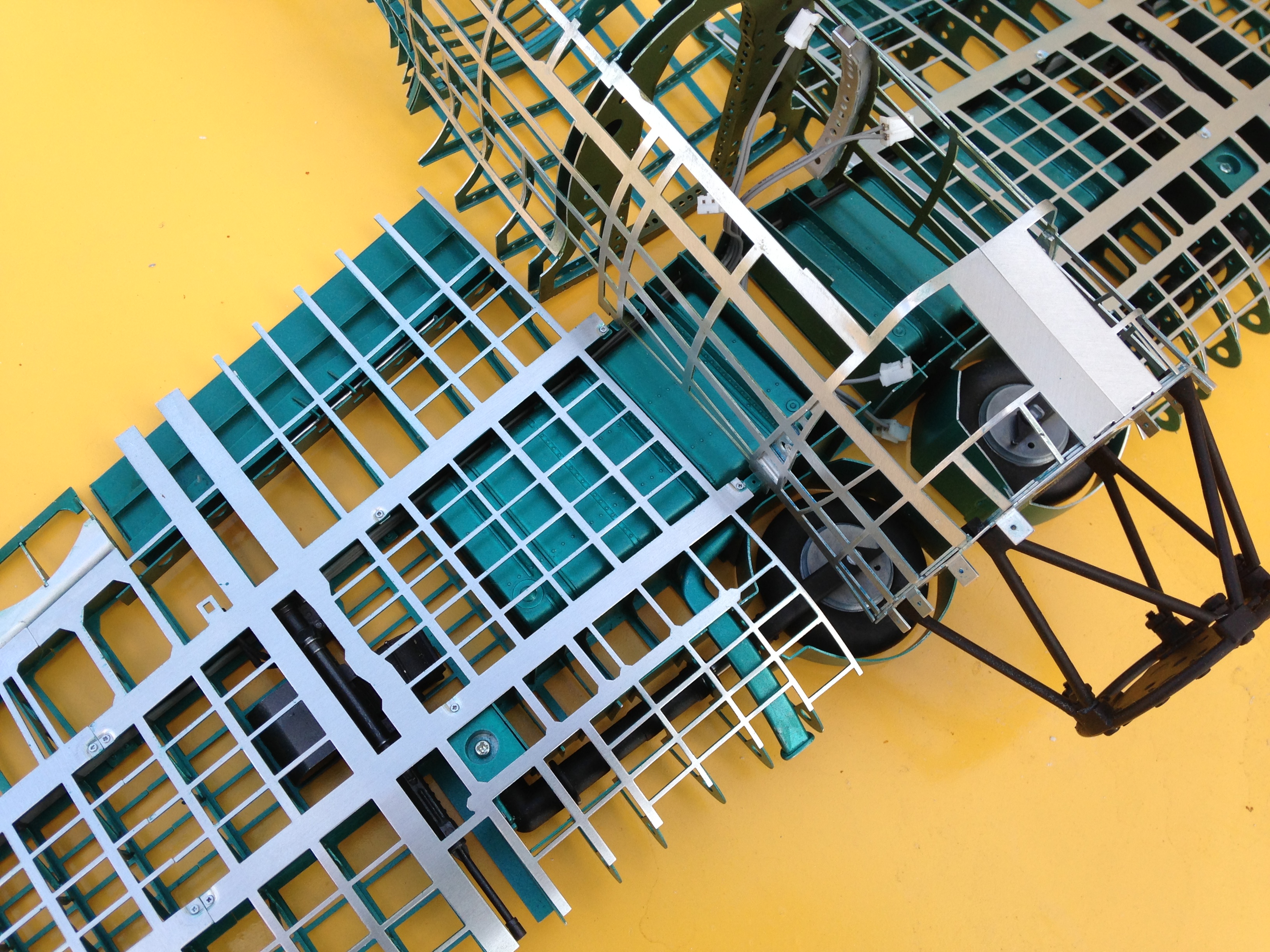 The tank was cemented together, after making double and triple sure the switch functioned. Then the seam was filled. I felt the 2 colors of Alclad would add a bit of visual interest. (not that the model really needs that...)