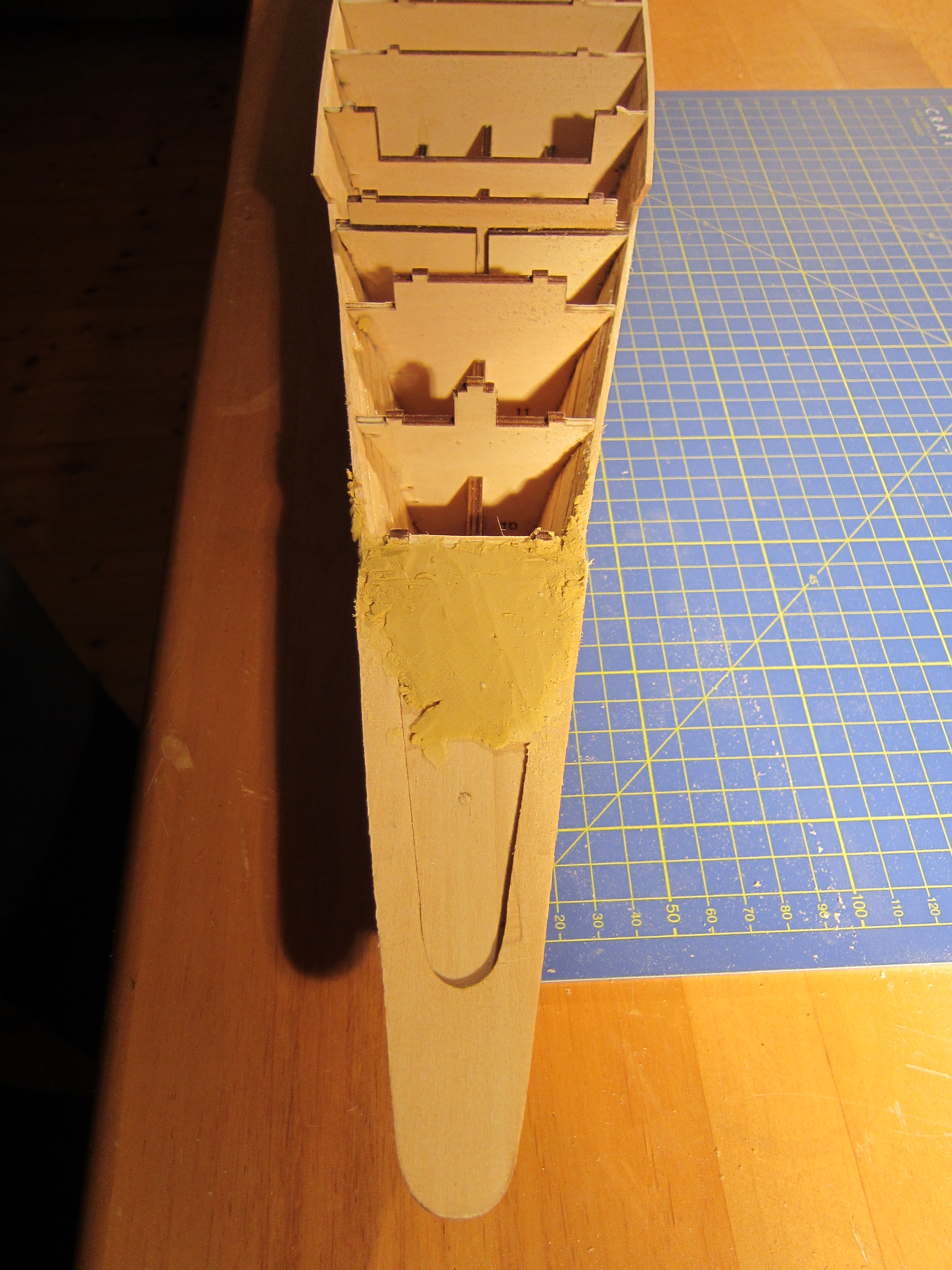 A little bit of fairing, attached the stern, filled at the bow.