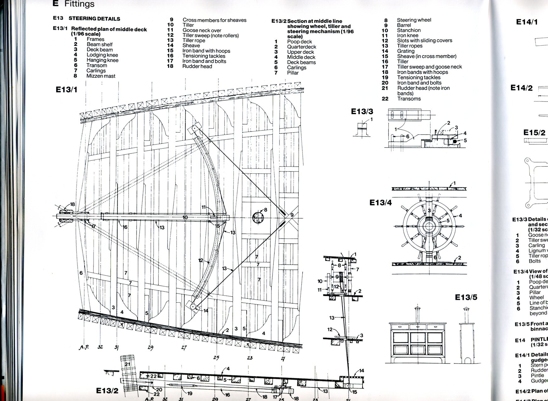 3. If, as your wires are below the lower gun deck, your control is going to be at the same level as the wires, do you intend your mechanism to be at 2/3rd's the height of the rudder. This being the case; internal action at a narrow part of the hull could be impossible; and external action would affect the look of the final finish of your new lady.
