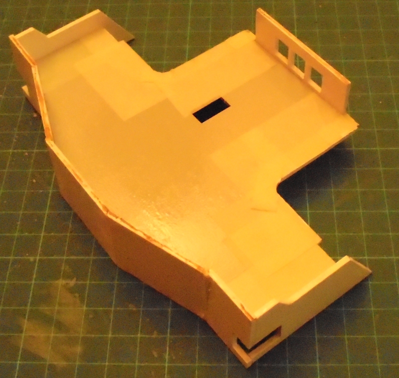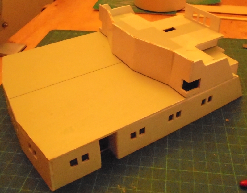 The main upper structure is removable so it can be built separately from the rest of the ship. The pieces were removed and cleaned up. The cabin