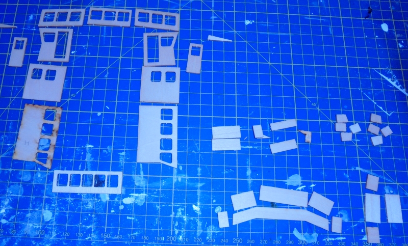 The next step was the construction of the wheelhouse. I identified all the required components and cleaned them up.
