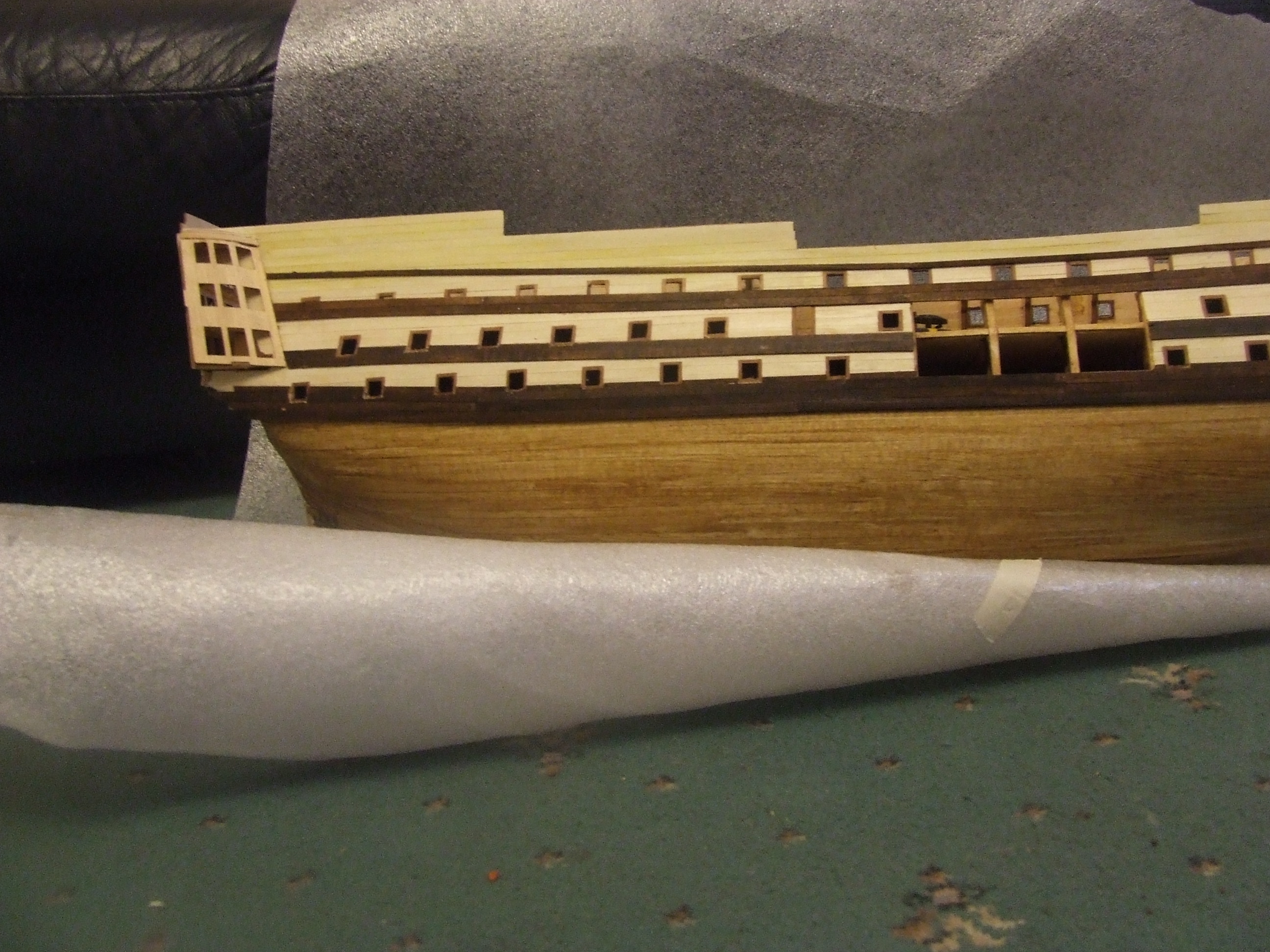 The masts are from my Cutty Sark, I did some work on them while at an athletics event with my daughter, it helped pass the time. I've put them on Victory to keep them out the way to avoid damage, but it gives some idea of what she will look like later.