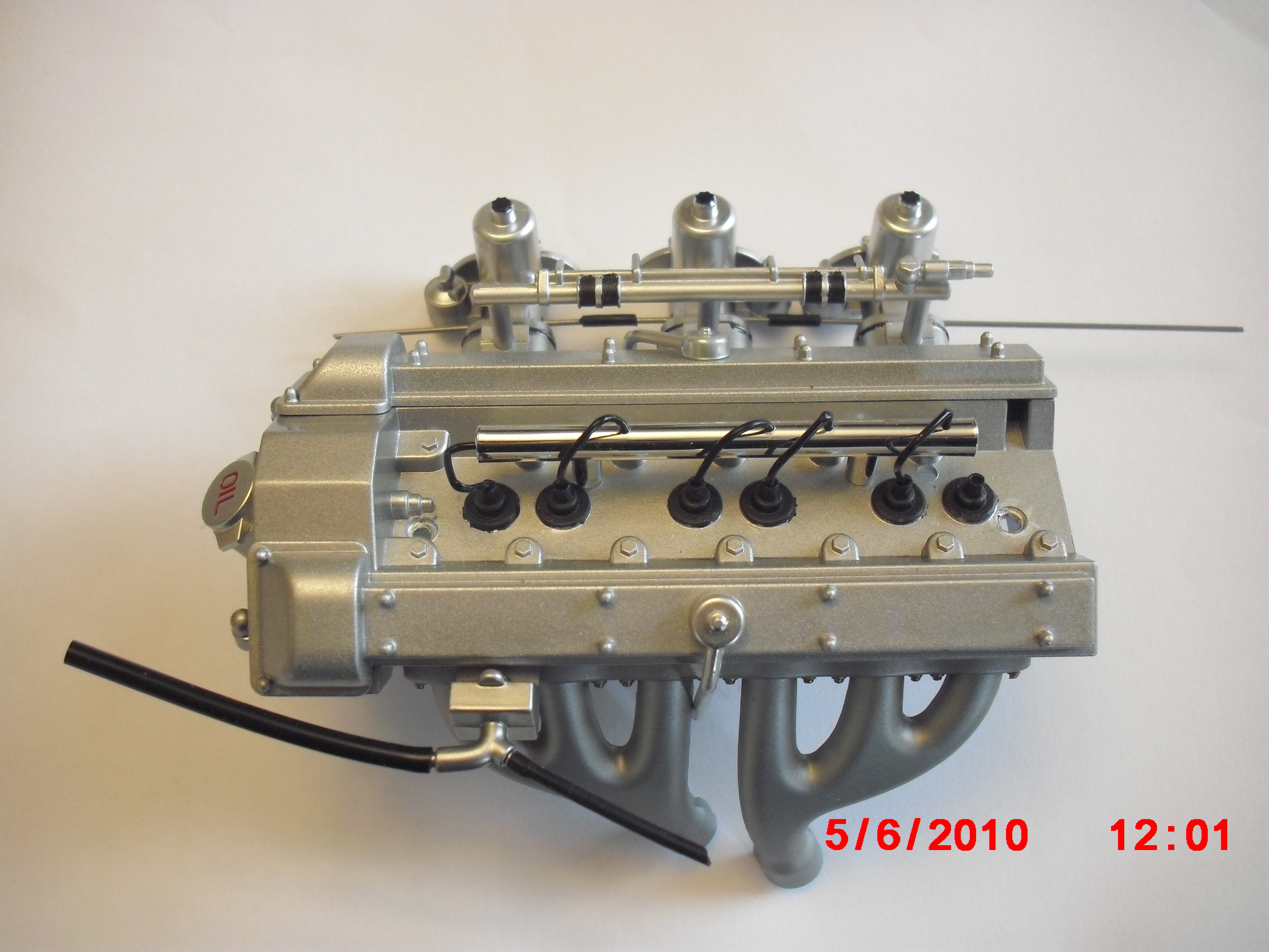 Part 9) Exhaust manifold;Ignition leadholder and leads;Distributor cap and leads;Carburettor assembly.(fitted Manifold,ignition lead holder and carburettor assembly,)see last engine photo. The distributor cap came with 4 leads, pulled out the leads and modified the dizzy to take the 7 leads required ( 6 cylinder + 1 to the coil).