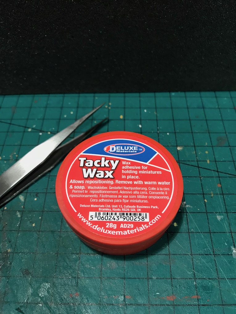 Tacky Wax is a semi-perminant adhesive that is commonly used by model builders of dolls houses and railways, but is often overlooked by other modellers. The product is is promoted as the ideal solution for placing figures or other objects on a diorama as you can reposition them, ideal for railway modelling and why it is a common product in museums.