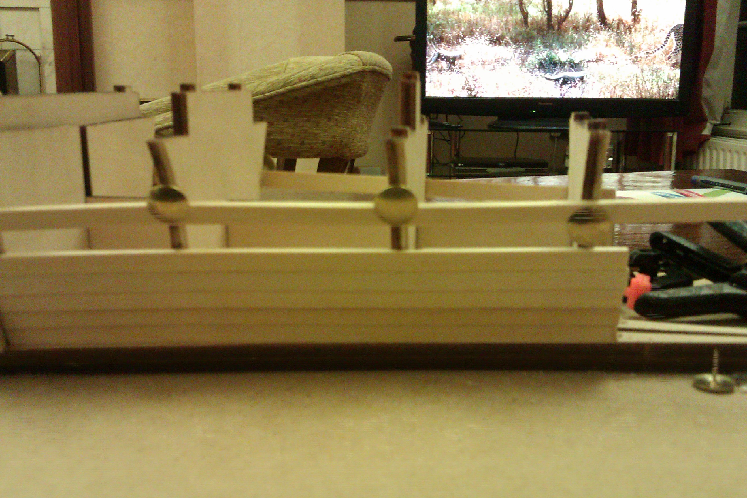 While the glue was drying I started on the bow block, while I was glueing the parts together I noticed that there were small gaps so I stopped and clamped everything together, will finish it off tomorrow.Cool