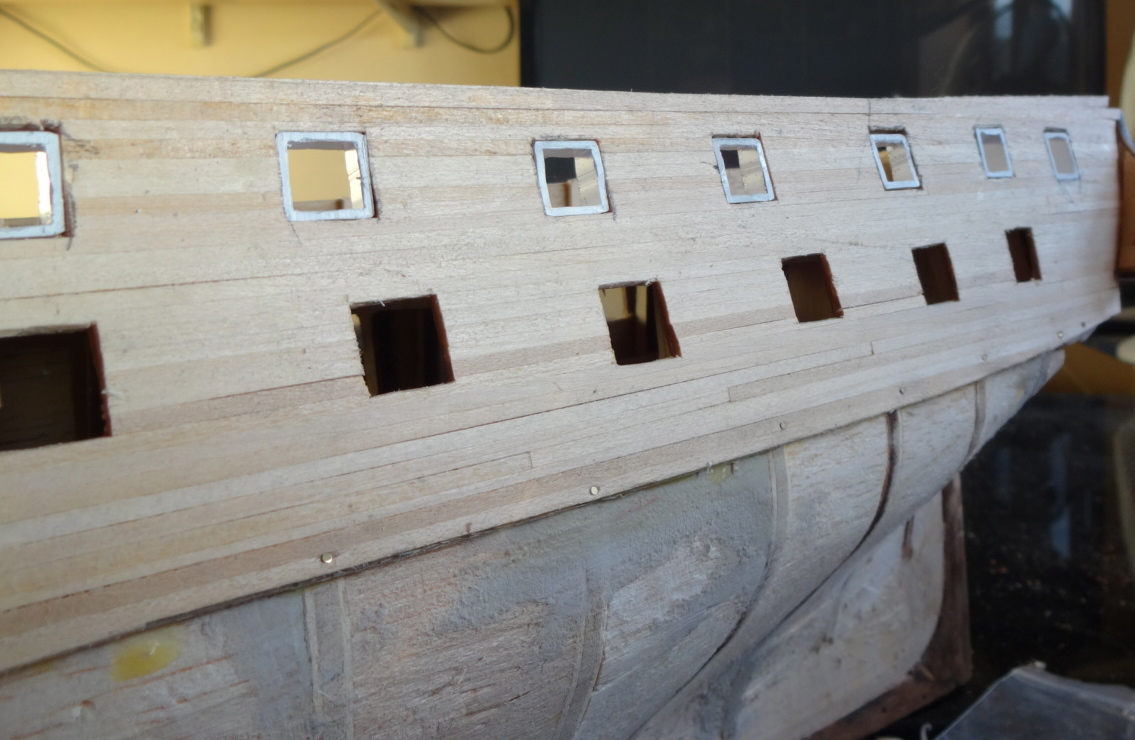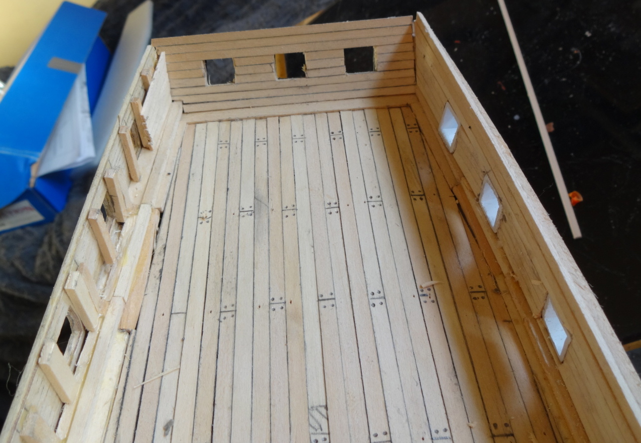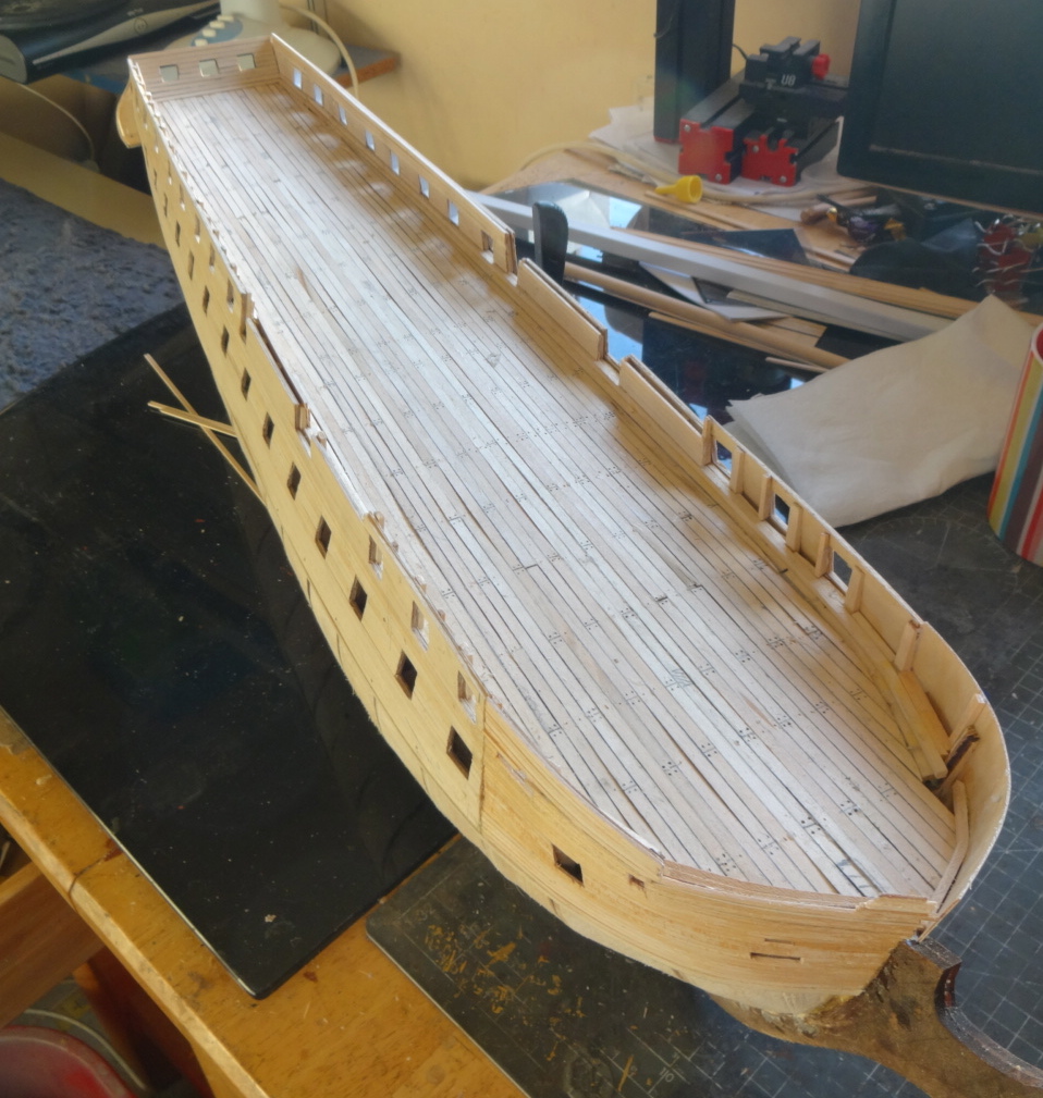 at the mo the stars are paper cutouts,just to see what they look like,will have to make some. right on with the show,this week been busy doing the deck,gunwales/gunports, inner transome,total build time 110hrs. Current builds: SotS, USS Consitution, San Felipe, D51 loco, HMS Surprise, RB7, Arab Dhow, Jotika HMS Victory Completed builds: HMS Pickel, Thermopylae, Mississipi river boat, Mary Rose, Cutty Sark, San Francisco II, HMS Victory x5, Titanic Lifeboat, Panart HMS Victory Launch, Hachette Titanic, Virginia Schooner, Endeavour Longboat. http://www.model-space.com/gb/