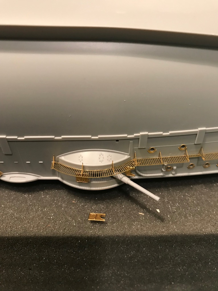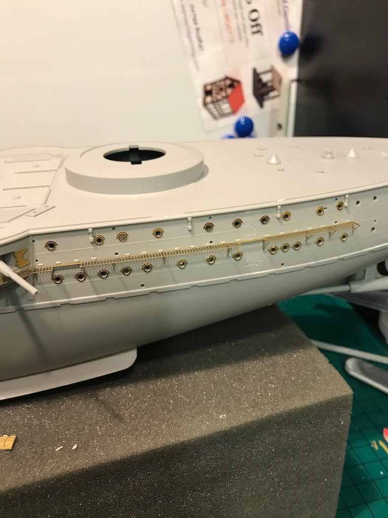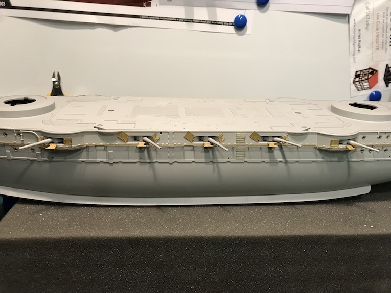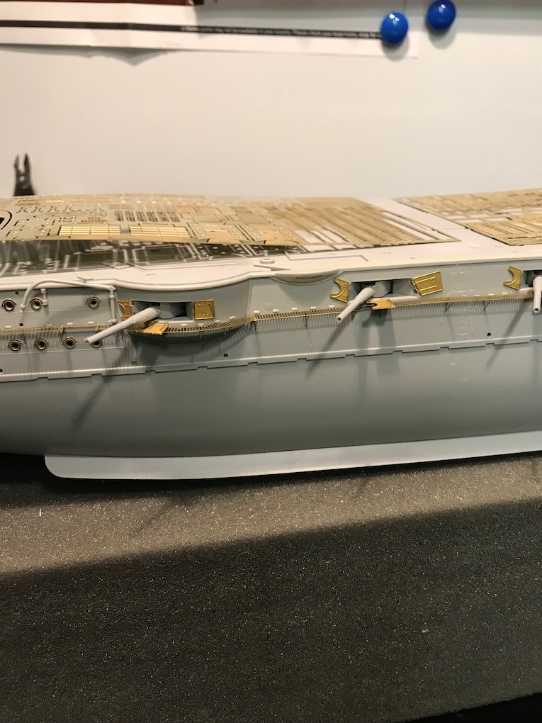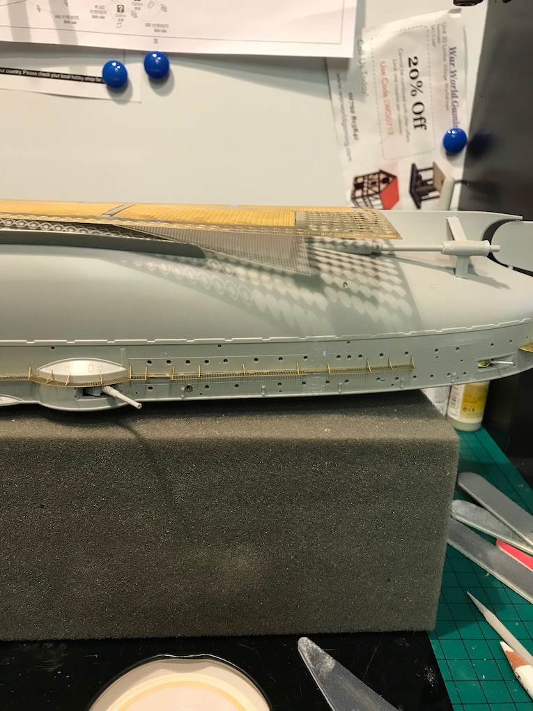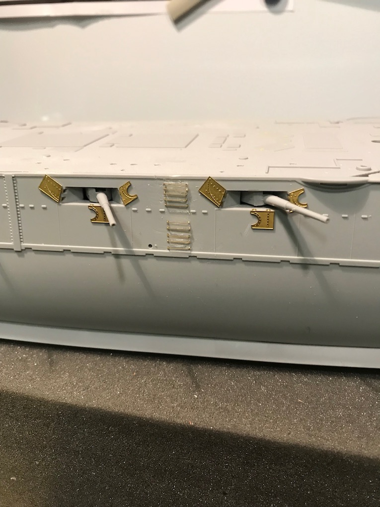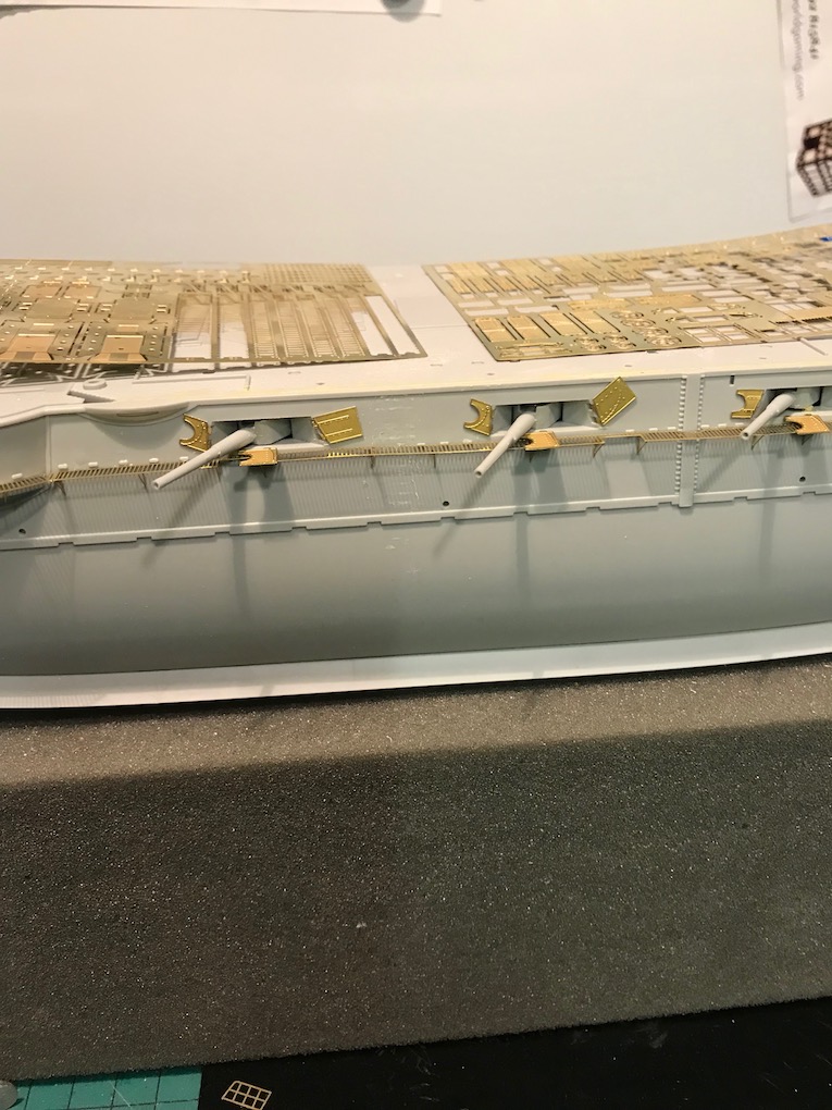 I decided it made sense to add the walkways to both sides before adding the other etch so as to mount the gun shutters correctly first time on the other side.