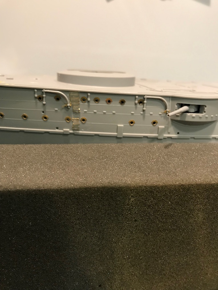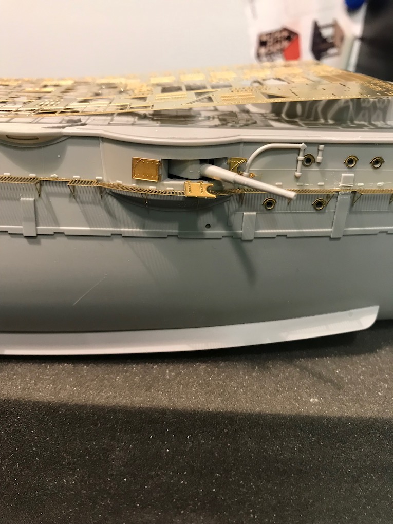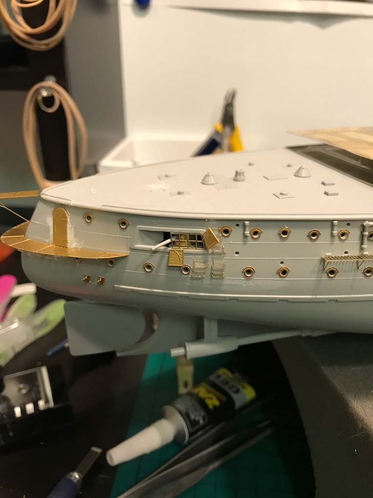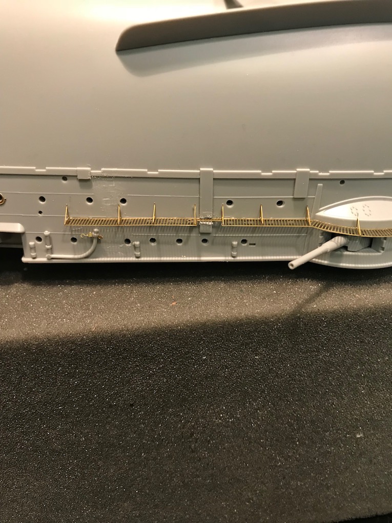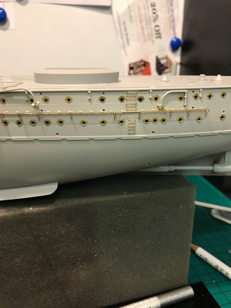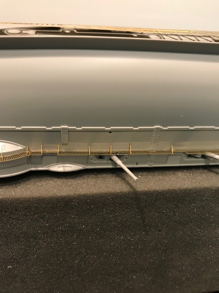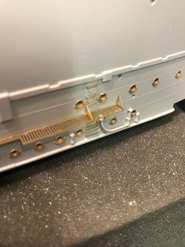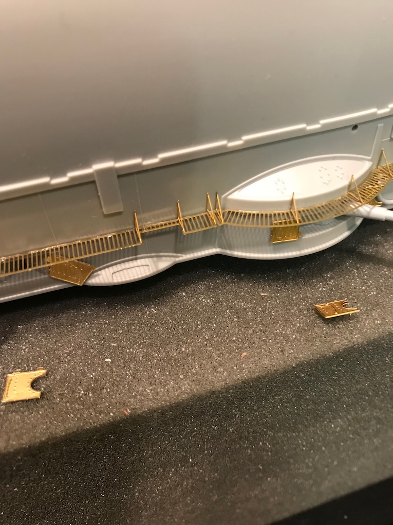 I decided it made sense to add the walkways to both sides before adding the other etch so as to mount the gun shutters correctly first time on the other side.