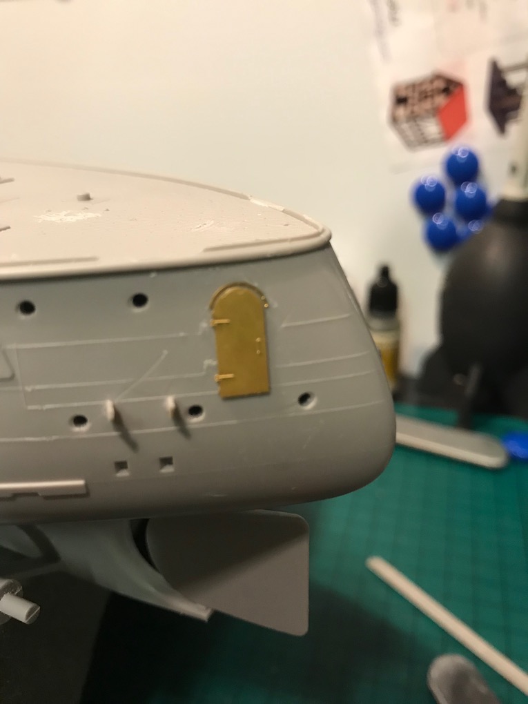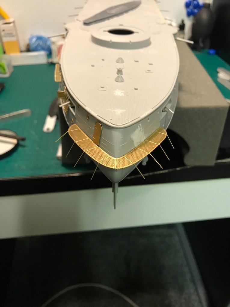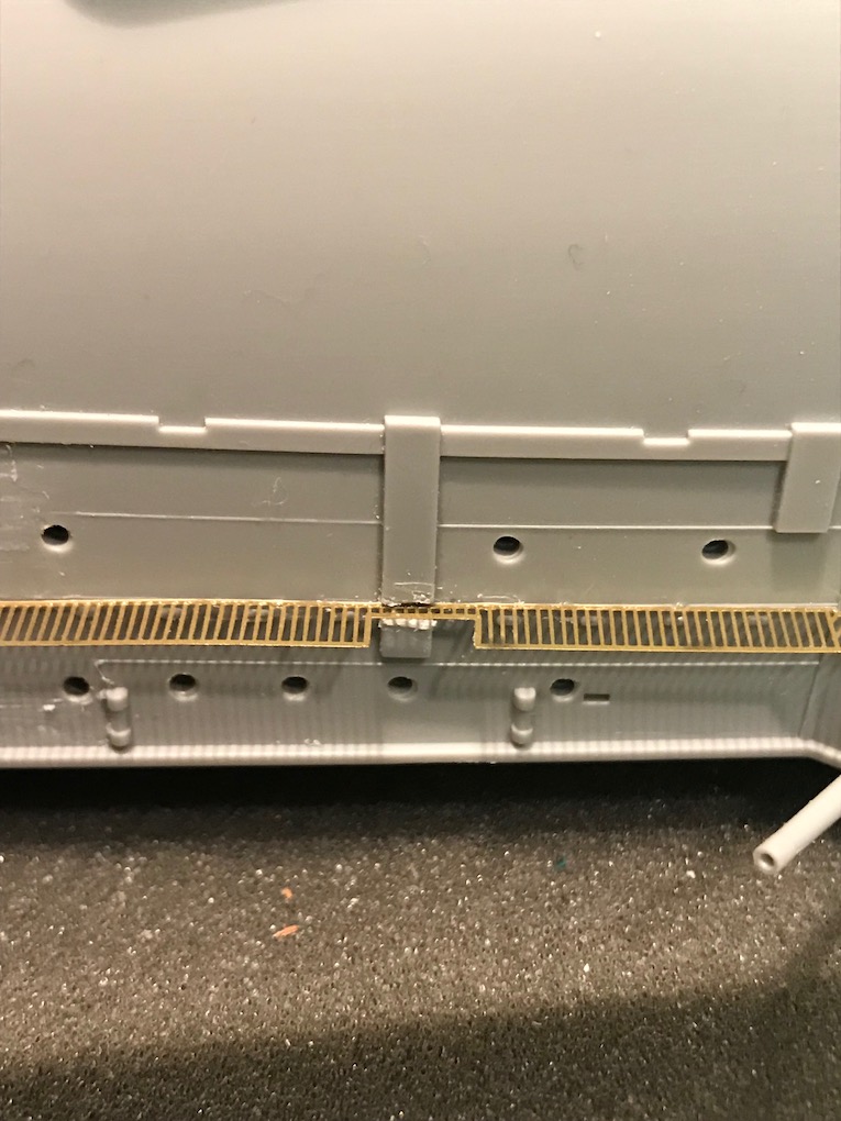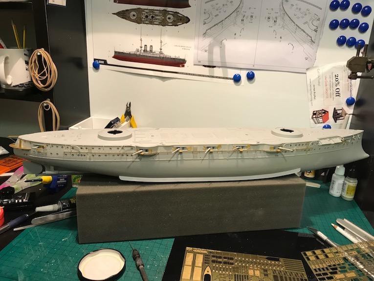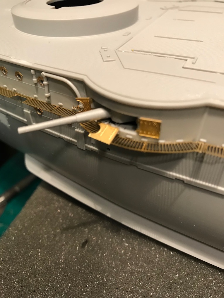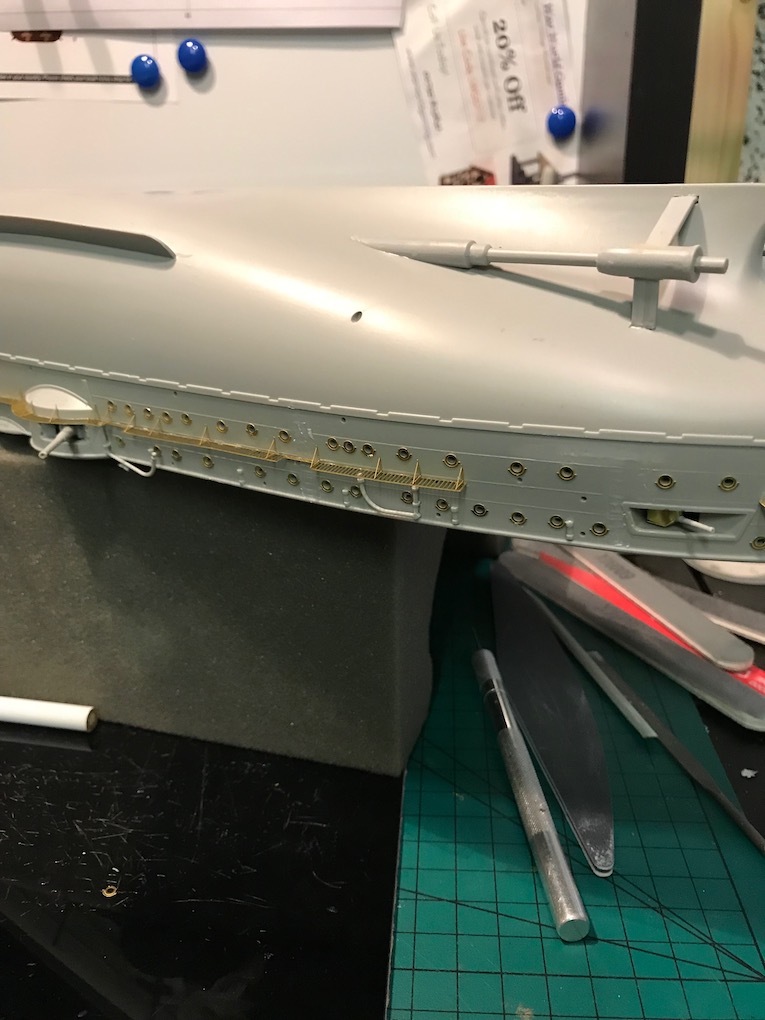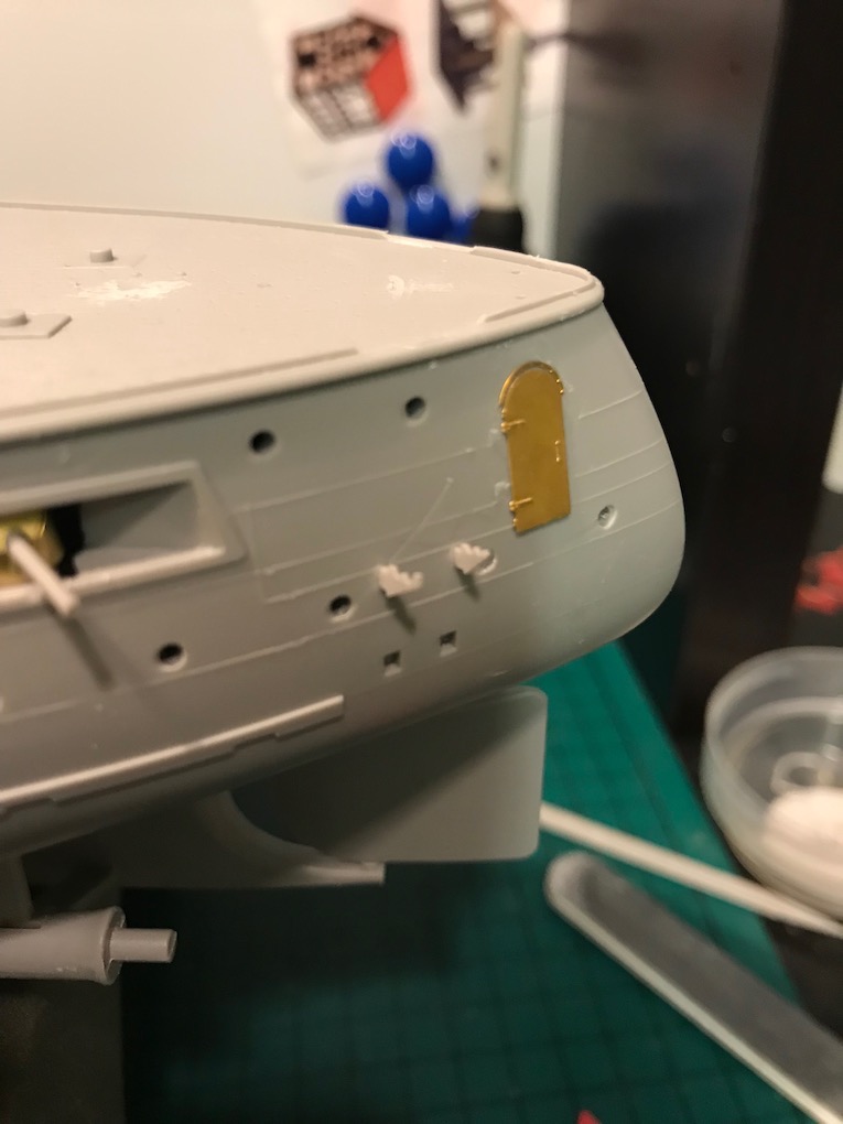 I decided it made sense to add the walkways to both sides before adding the other etch so as to mount the gun shutters correctly first time on the other side.