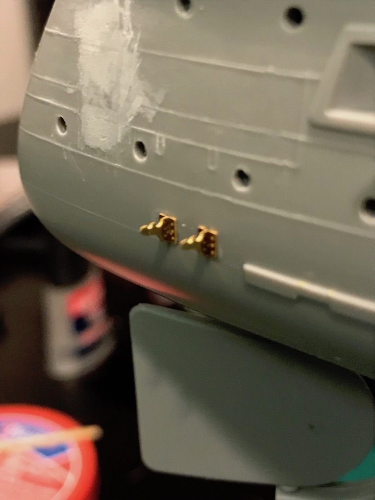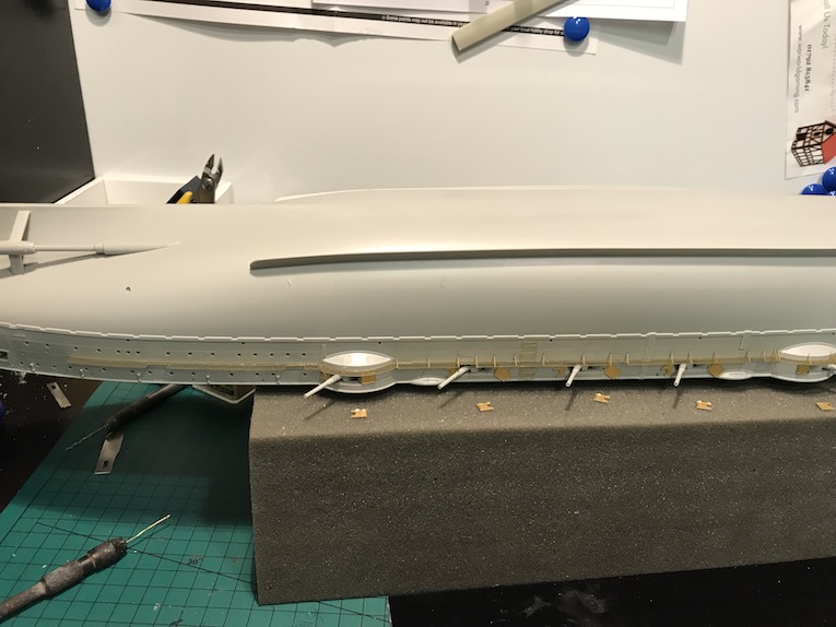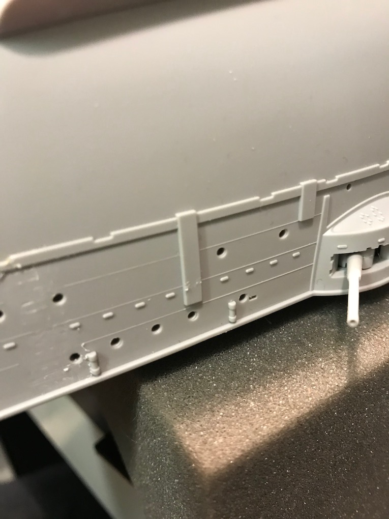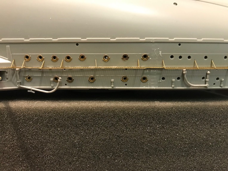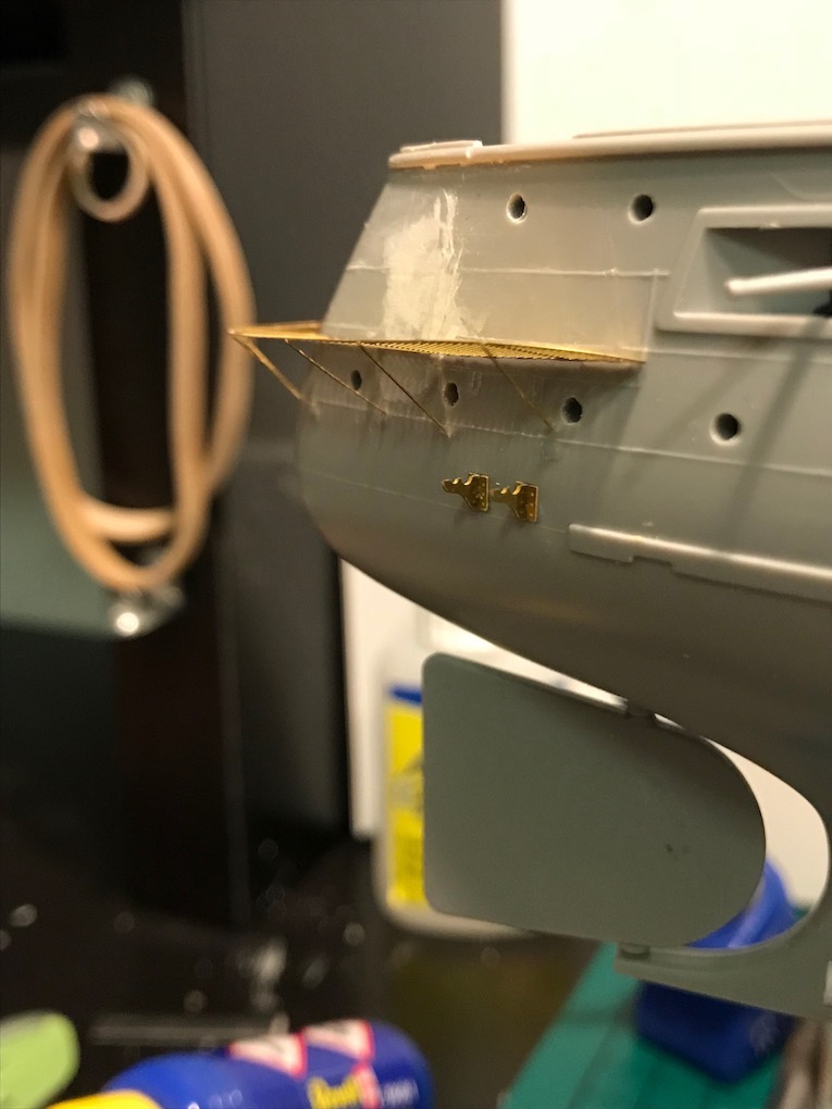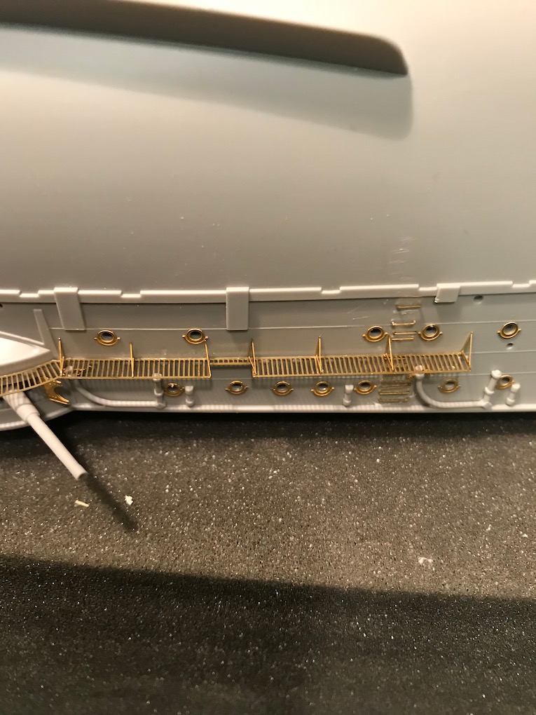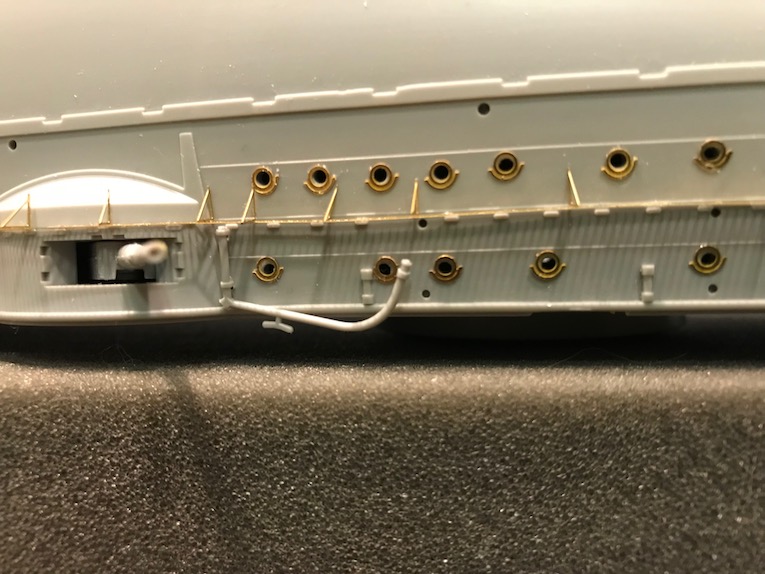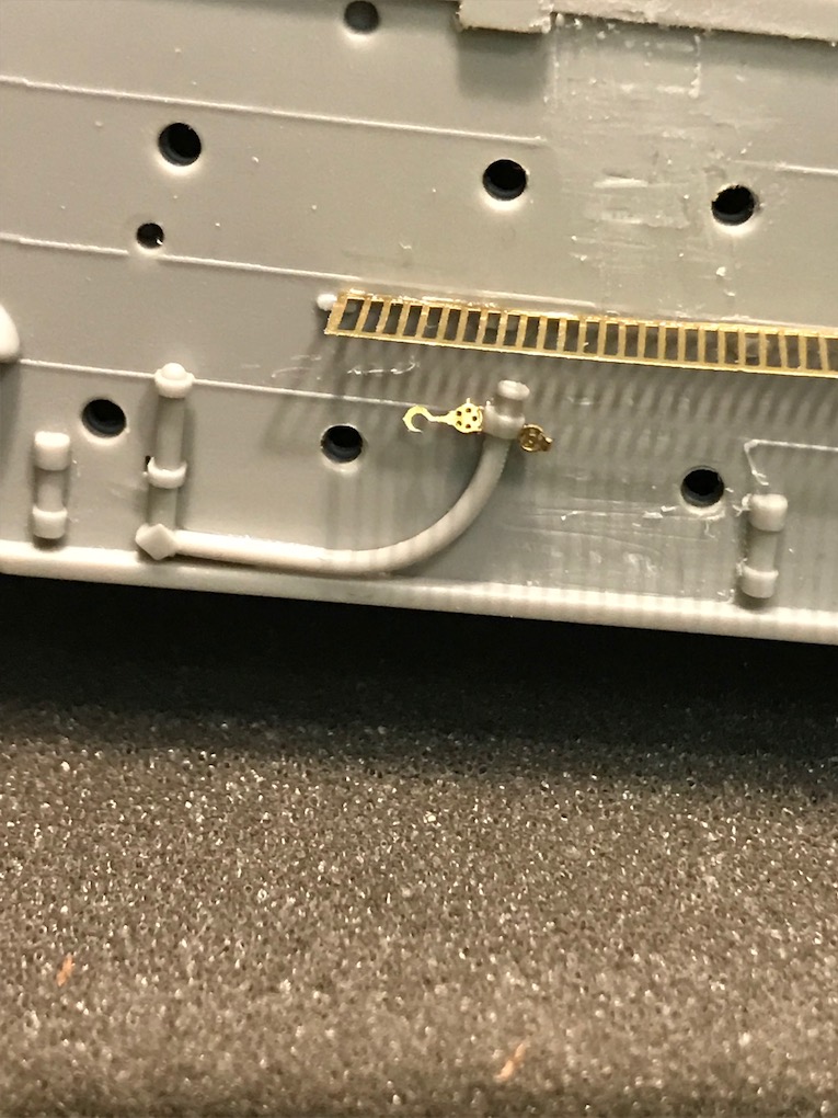 Earlier in the build we removed the moulded on grab Handels from the hull. As the build progresses down the hull these need to be replaced with etch ones.