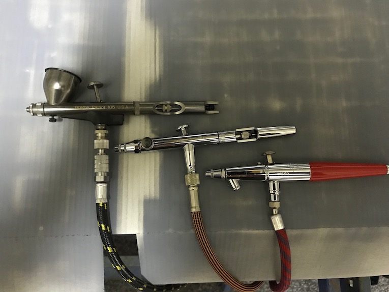 I decided to go with my Iwata eclipse airbrush for the hull painting (the middle one in photo 4). I normally use the Paasche VL (one on the right) for big jobs, it was my first airbrush and is not as sensitive or as controllable as the Iwata but suits big coverage jobs, however I managed to thread my adaptor ring on the there way regulator, so cannot use it until I replace the part. so it did take me a bit longer as I don't have as big needles for the Iwata. The Badger Xtreme Patriot 105 on the left I only use for very fine detail, its special designed for that use but the strip down and clean is more difficult than the Iwata, so only use when the job dictates.