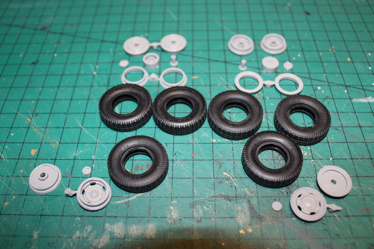 Next up in the instruction build process is the wheels. The tyres pop on fairly easily but the front Axel assembly is quite delicate so decided to leave the wheels of until after initial painting. the rear Axel is much more sturdy so they were added.