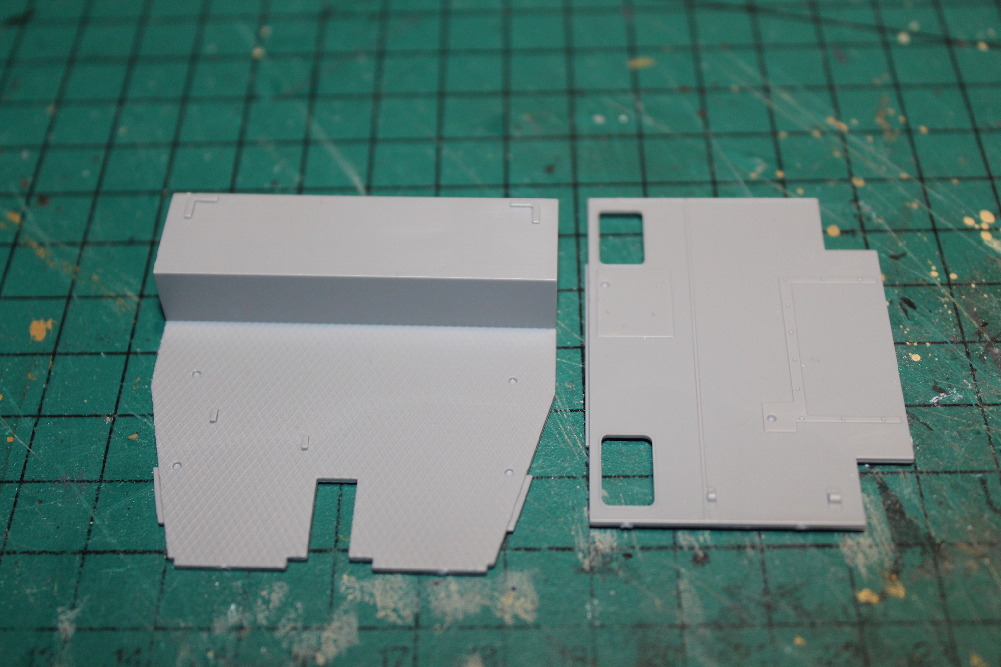 the side panels have the latches and Handels sanded off ready for etch replacements.the radiator and front grill fit together will but you dont see the face of the radiator so I didn't bother with the etch radiator front. the bonnet sections build up well and once placed on the chassis give the front foot plate a positive fit.