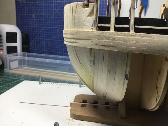 On the contrary John, you are correct that I have taken too much out of the stern plank. I have attached a couple of photos that I just took to confirm flatness of the stern plates but the plank is all wrong. I will be taking that out again tonight and getting it a little closer to the recommended shape. Looking at the first picture again it looks as if the planking is not square to the stern? I'll have another check. goddo attached the following image(s):