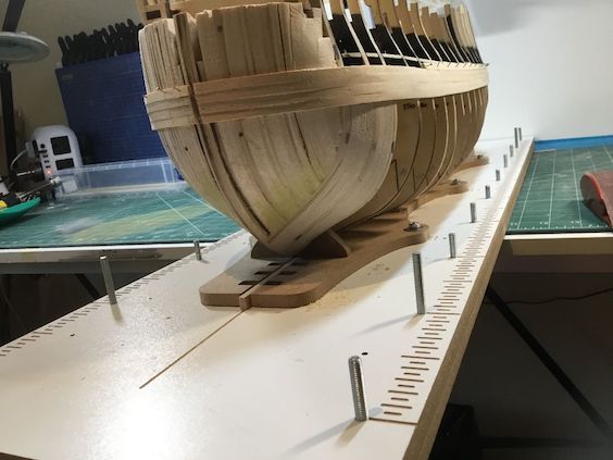 Hi Goddo, from what I can see I'd say everything is looking good. Would ask you to post up one pic looking along the hull so I can see the flow of the planks. Think you can now go ahead a glue that first row in place ensuring as the glue dries that the planks sit flat against the whole width of each rib. Once the glue dries then you can set about applying the next row of planks in the same way. If you need to chamfer to ensure the planks sit flat against each other then chamfer the lower edge of the new plank only. Look forward to seeing how get on... Regards Alan