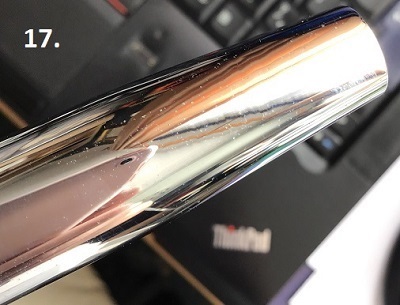 STAGE 52 – PASSENGER FOOTREST AND BASE OF THE TANKPICTURE 16In this stage we get: The second exhaust pipe (issues with this part that I will discuss later) We also need to recover from earlier stages: STAGE 17 – The Reservoir Base STAGE 34 – The Left Half of the Frame and a Type F screw COMING IN STAGE 60 – The Passenger Footrest Again, I can see little point in just fitting the tank base to one half of the frame as I do not want to end up damaging the part in storage so again this stage will be left until some future time. PROBLEMS WITH THIS PACKSo, onto my reasons for feeling disappointed with this pack. PICTURES 17, 18 & 19Both exhaust pipes have issues with the chrome finish. Its really difficult to pick up on camera but the whole surfaces of both exhaust pipes are very rough with either dust in the chrome finish or possible rust coming through the chrome. Its not surface dust that has stuck but is actual inclusions in the chrome plating itself. I have been onto customer services and they have asked what stages this issue relates to so have supplied that detail (again) and hoping Monday I get a reply. So, all in all a very short and un-inspiring build stage this time. Just hoping my next packs may bring some cheer but looking forward to getting this one finished now because of the issues I have been having. File Attachment(s): birdaj2 attached the following image(s): Happy Modelling