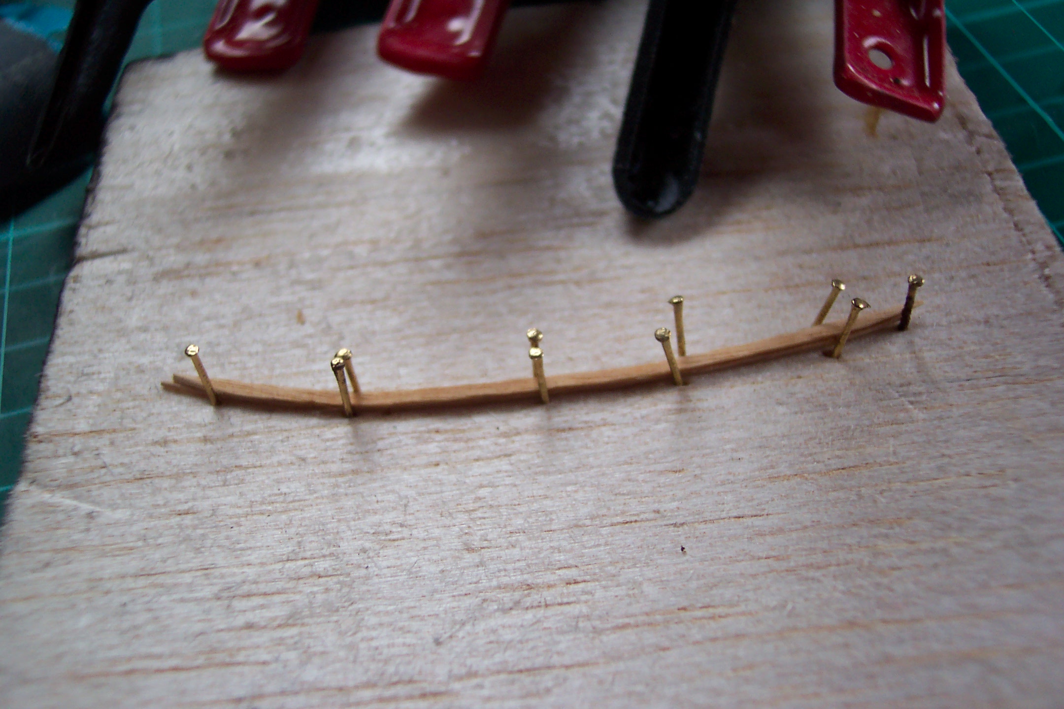 curling the rubbing strakes i found it a bit awkward not got an electric bender & knew would be fiddly with soldering iron as i would have to put a damp rag over the wood so as it wouldn't get marked using my fingers was a no no as split tried this both rubbing strakes are there waiting for them to dry