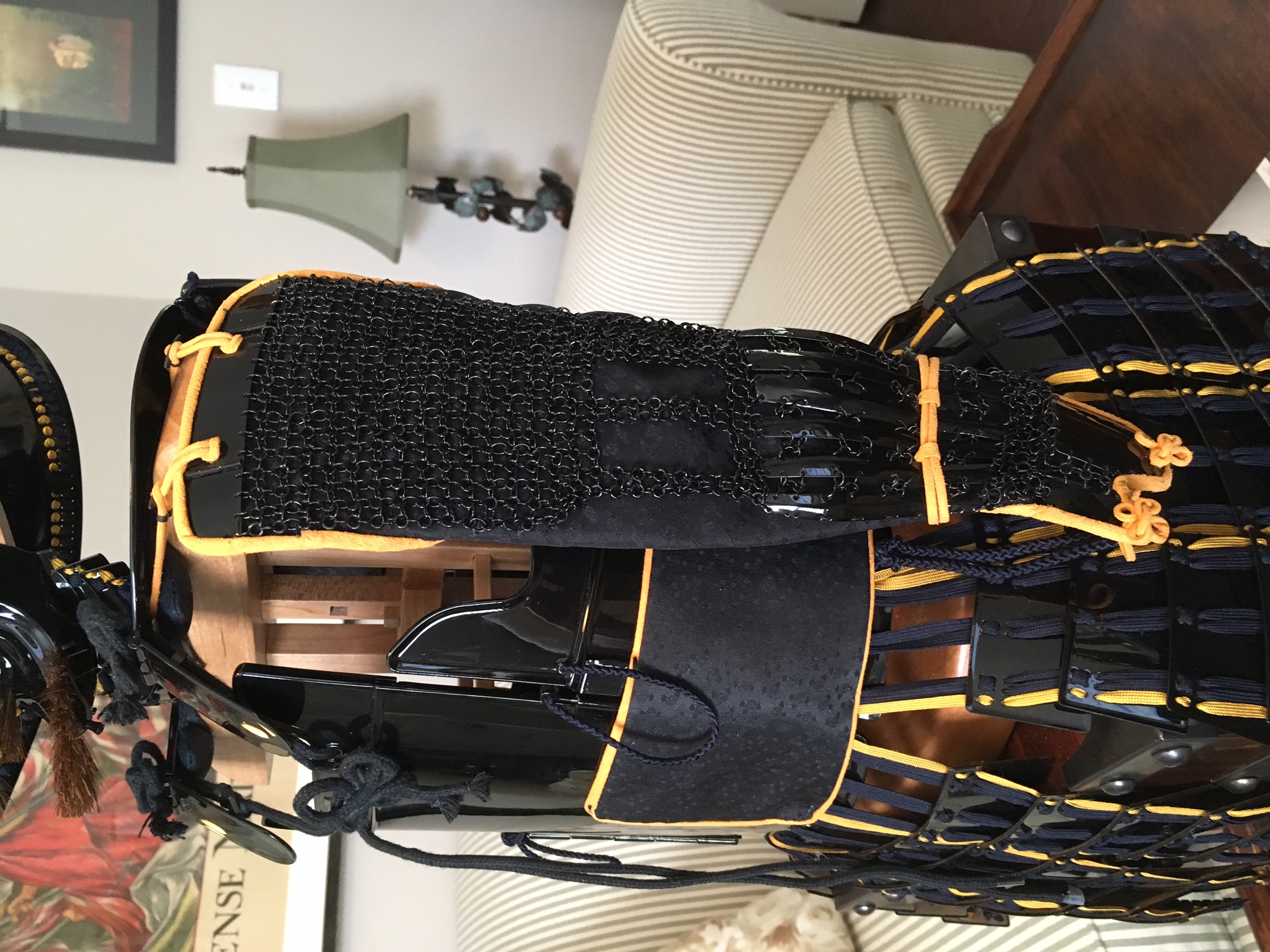 Finishing this sleeve was an exercise in how to overwork things.☹️ Be sure to SHARPEN the punch. It works well and I will need to resharpen for sleeve two. All was going fine until I started sealing the sleeve. For me, the black backing material supplied was crap, too thin, too fragile and there was nothing to hold any stitches.👎👎 On the next sleeve I will glue down this material prior to folding over the suede border and will skip any effort to stitch the sleeve except for the horizontal line of the leather hand liner. A bit of explanation here is called for, I tried stitching and besides finding the black material nearly impossible to secure, I also learned that the needle did not like to pierce CA glued joined layered material. This also caused me to overhandle the assembly and dirty the border suede. It does not easily clean and you will see it looks worn and still dirty. Be careful not to lap the border material aggressively. Again you will see I ran out of border to punch for lacing the sleeve. The lacing was surprisingly difficult for me as I used an earlier technique of lacing the sleeve loosely and then pulling them taunt. Did not work! Tighten as you go and do not over do it as I did. Not happy here. Attaching the yellow cord to the sleeve's hand and shoulder went well AFTER I enlarged the holes with a round jewelers file. Again I simply overhanded the parts try to feed three layers of cord through one hole. All in all, not my best work but there is another sleeve coming and when Date is finished, I will simply put his left side against the wall!🙂 Tomorrow I hope to attach the finished sleeve to the left shoulder. Hopefully without any problems. tnequette attached the following image(s):