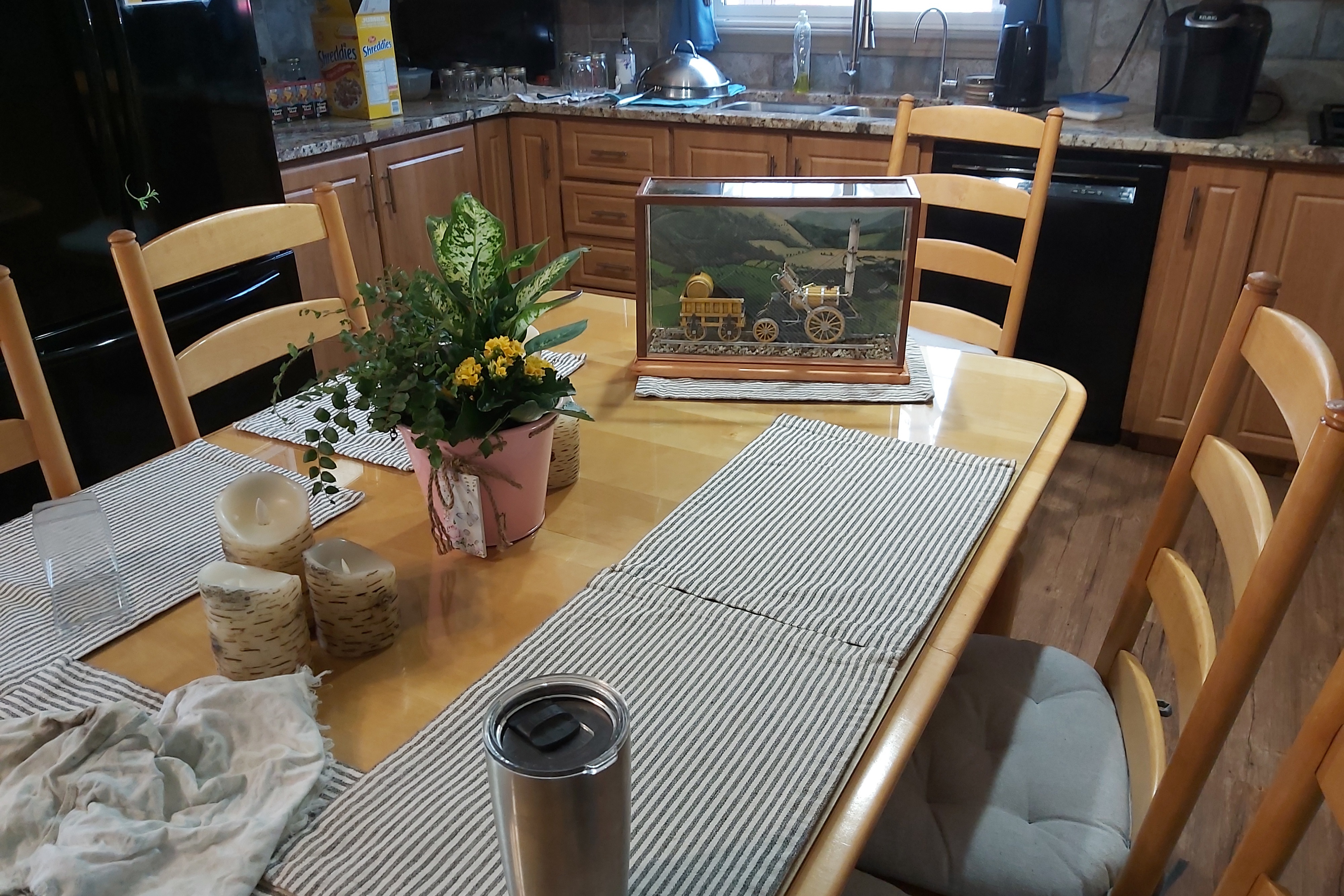 Hi, Well I have the case finished, just needs a cleanup of all the dust and it will be ready to display. I foundan old pic of Manchester city centre andwasgoing to paint a background of it for the Rocket, but I decided to look through my pile of acrylic painting I have, (another hobby of mine) and found a country scene that was suitable..................so, I trimmed it to size and that will now be my background pic, just need to get some 2 sided tape to hold it in place.