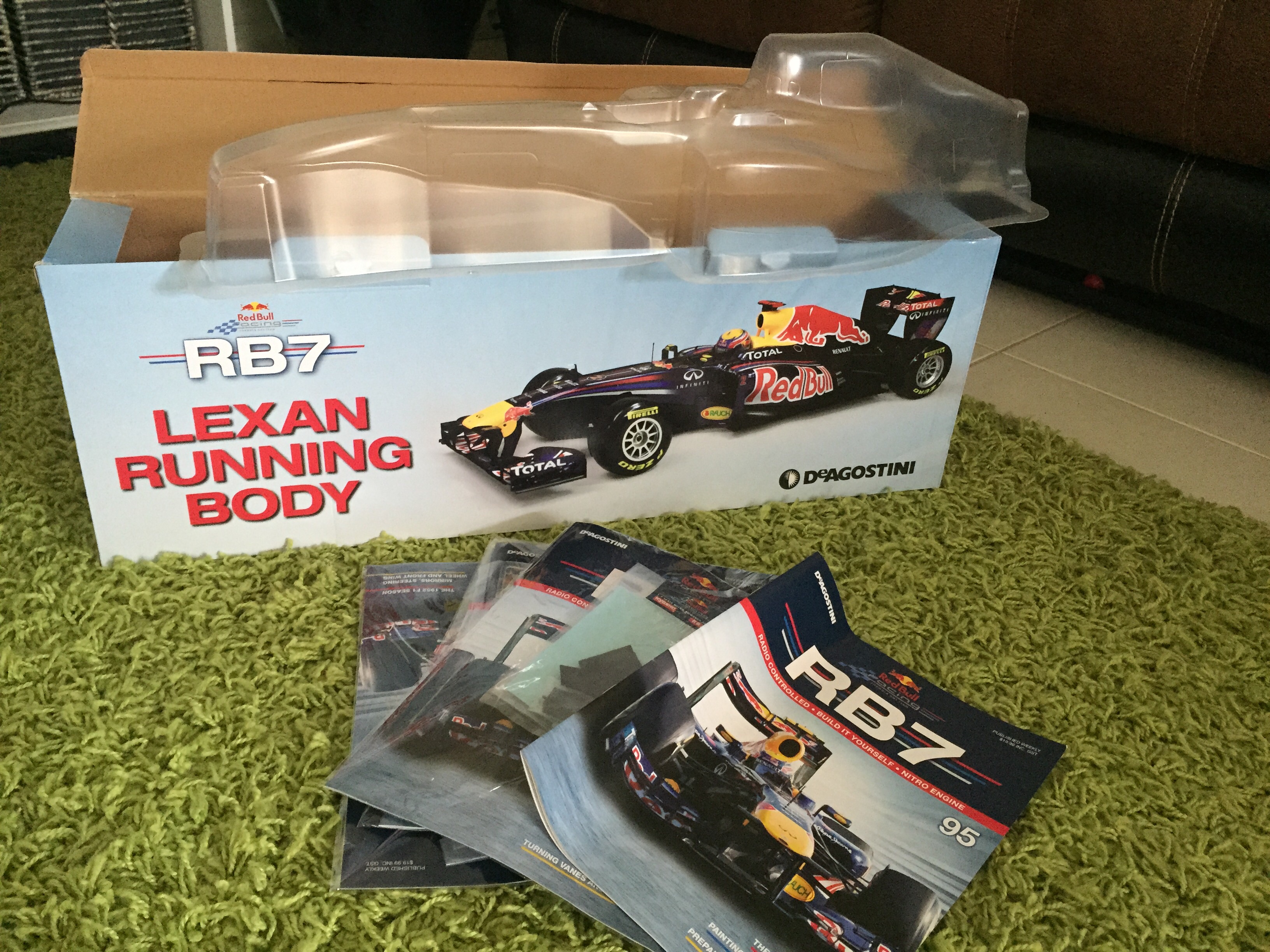 The Display body comes in parts and the goes from issue 84-99. Although the front and rear wings come in the earlier issues. And the polycarbonate Race body comes in issue 100.
