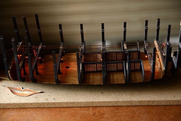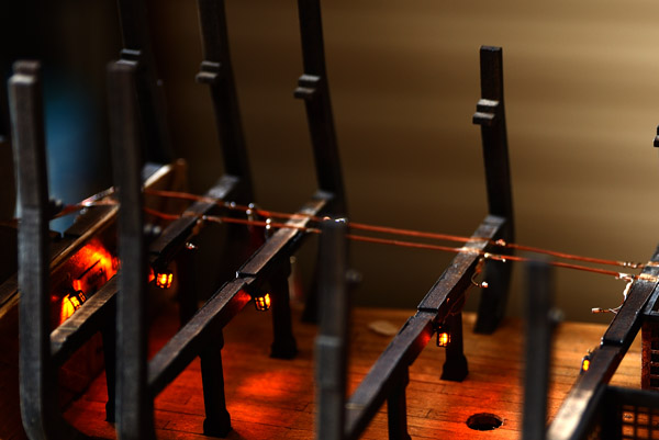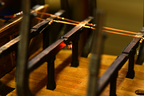 I have noticed that some of the lanterns flicker when the model is bumped, but after spending about 14 hours on them, I really don’t feel like going back. Perhaps there will be some dead lanterns once the hull is complete; I’m just going to have to live with that!!!