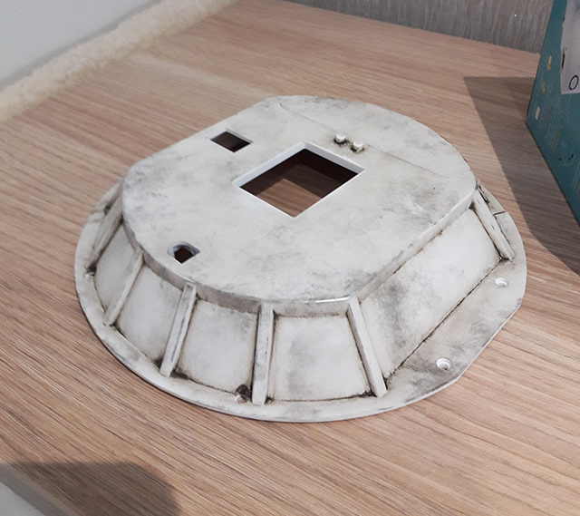 Thanks Ritchie69. He's really coming together now and taking on a personality and the beauty is that we have a lot of different looking R2's out there. Onto this months build and I started with putting together the bottom outer body panel for weathering without the switch and charger components as I am going to be spraying the satin varnish over the top. Next I built the last of the door panel components and weathered up as needed. I added this to the last body panel and fixed the whole thing to the rest of the front body. This is when I decided to add the extra weathering on all body parts including the legs and head. File Attachment(s): lholland attached the following image(s):