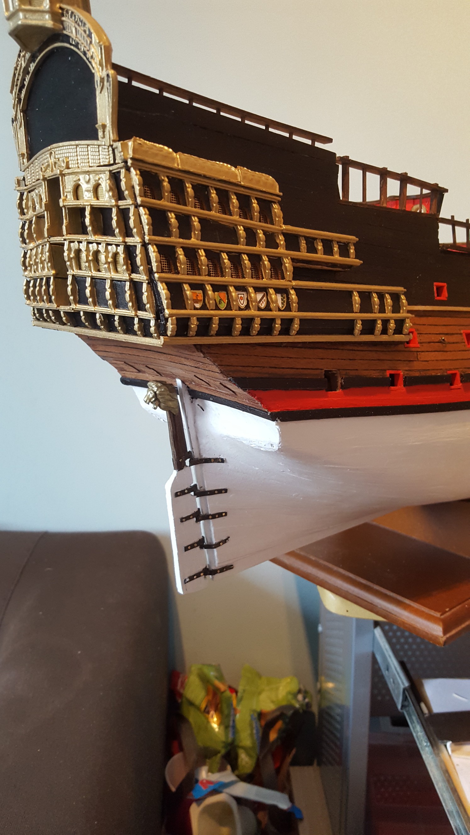 Certainly the truckiest bit of the build so far was the fitting of the rudder. Took me ages. I cant get it perfect no matter how hard i try. Anyway i have settled fir this. I am happy enough all things concidered. I dont seem to have any more eye bolts for behind the rudder so i will leave that for now. Hooefully there will be a few more in a later issue.