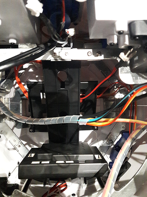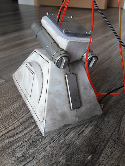 At this point I masked up all the relevant wires for all the main legs and body panels and carefully sprayed everything with a satin varnish to hold all the paintwork as I knew the next few stages of piecing together would require a lot of handling. Attaching the base panel on the metal body frame was pretty straightforward but attaching the legs proved to be quite fiddly on one side to connect at the same time as trying to get the wires moved out of the way to do this. At 1 point I thought I was going to have to open the top part of the leg to move the black sensor wire out of the way but luckily this wasn't needed. Phew! File Attachment(s): lholland attached the following image(s):