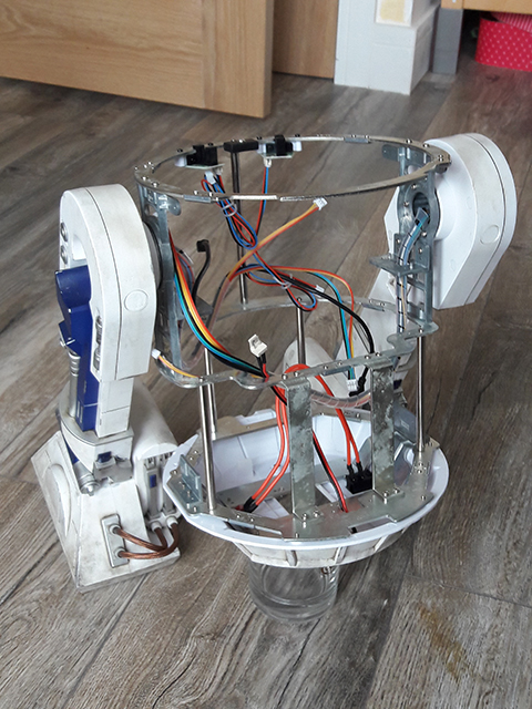Onwards with the front leg and he's really starting to shape up. It can be daunting to see all those wires within the body frame but the location of each one is very well thought out and it helps to just take a little time to view them over and remind yourself where each one belongs. This is the point where I had to sit down and have a moment to think now comes the part where I can finally see (just for looks) if R2 is the droid I was looking for. Temporarily adding the front and back panels was amazing but then adding the head took this 2 year build to a whole new level. From here on in its all about the electronics and certainly what I have seen so far with various bits working over time this is going to be my biggest dream toy ever. File Attachment(s): lholland attached the following image(s):
