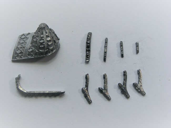 Retrieve the stem decorations supplied with stage 105. Remove parts BSB, BSC, BSD, BSE, BSF and BSG from the fret and apply a coat of metal primer. Once again, follow the painting guide provided within the instructions to paint these decorations.